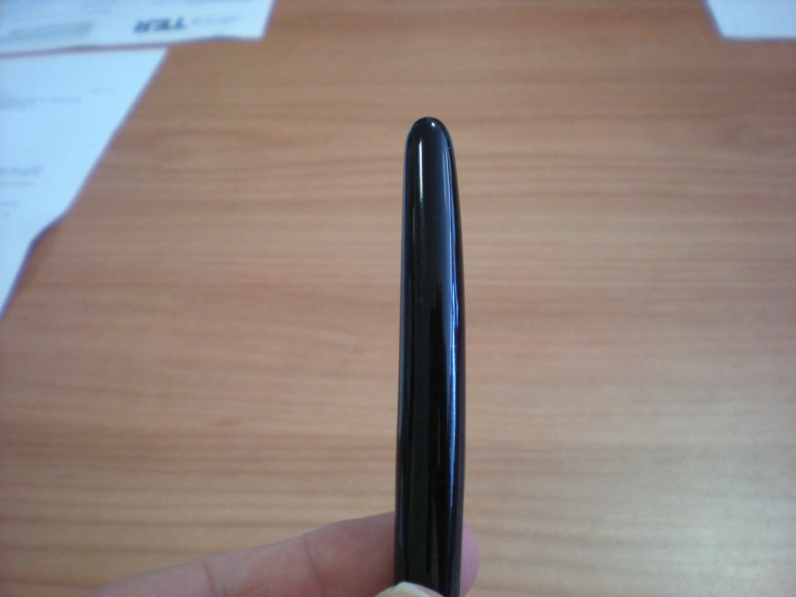 il corpo si è deformato a forma di banana, l'ho sempre visto così, probabilmente è stata esposta al sole. Ho visto altre foto sul web di questa penna con lo stesso difetto