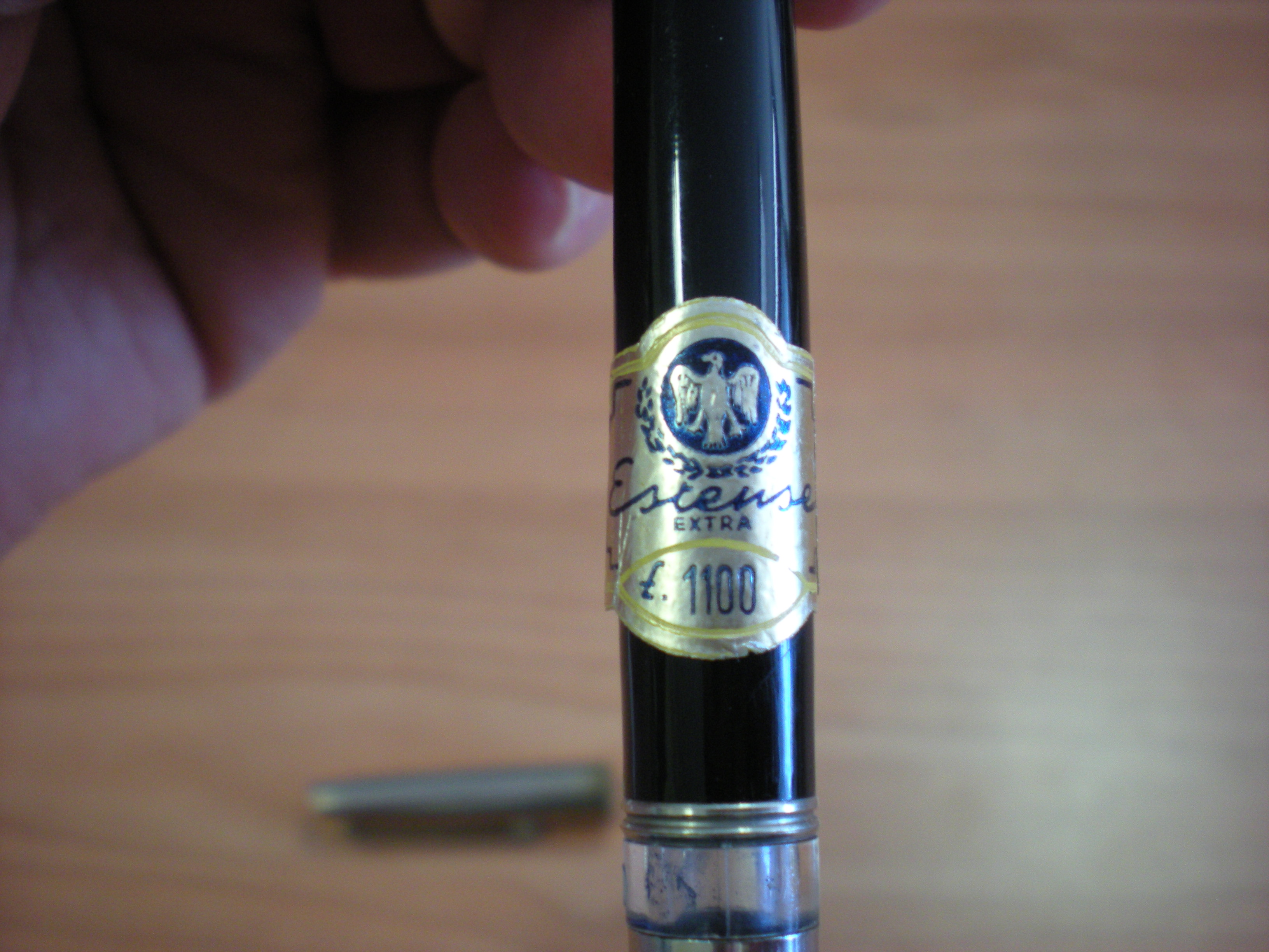 la fascetta originale con lo stemma aziendale, il modello di penna e il prezzo in lire che ,considerando il periodo in cui veniva venduta, non era poco