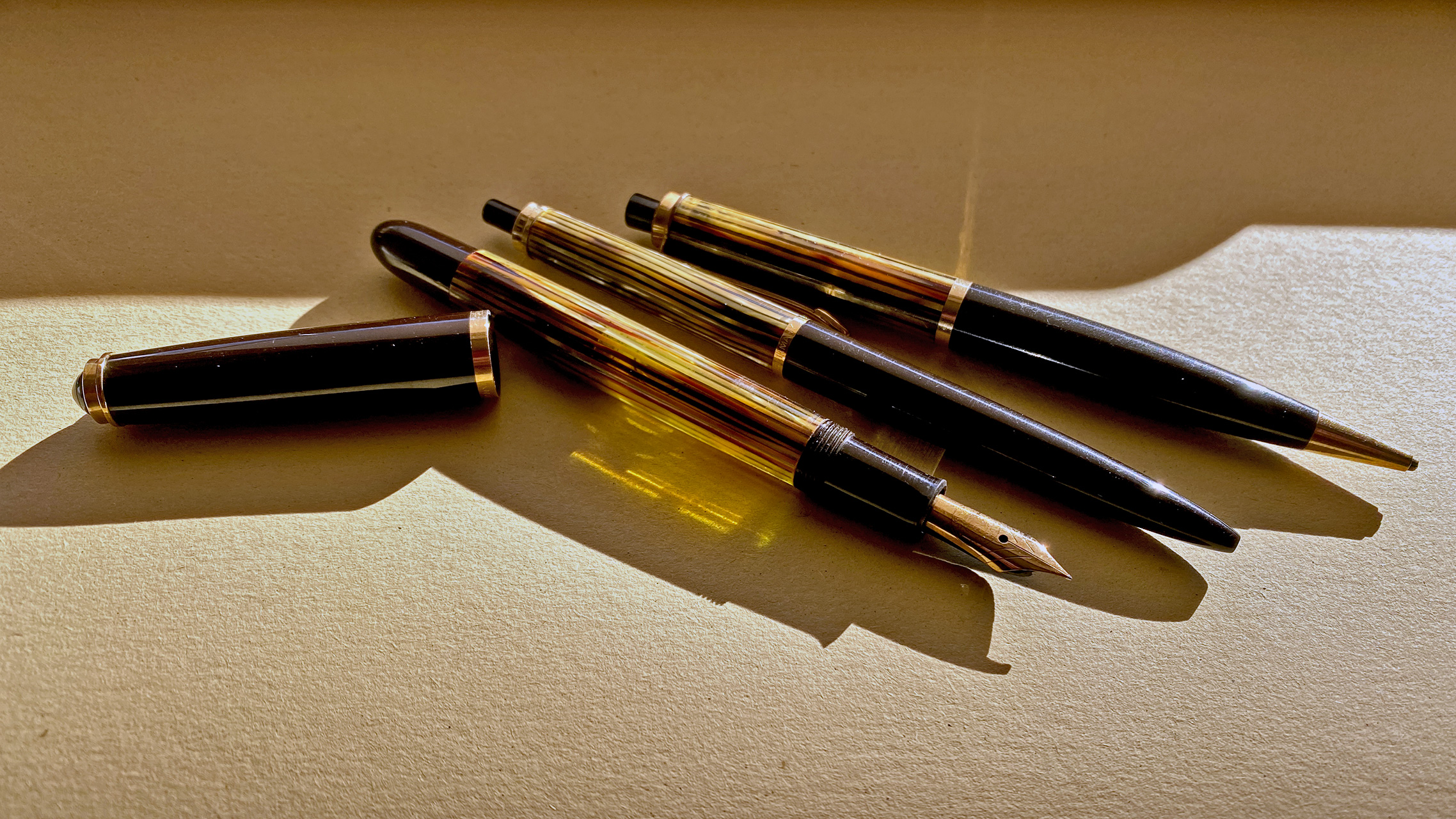 Ho solo una Pelikan, una M200 grigia marmorizzata, ma sono d'accordo sull'iconicità del verde/nero e del verde striato.