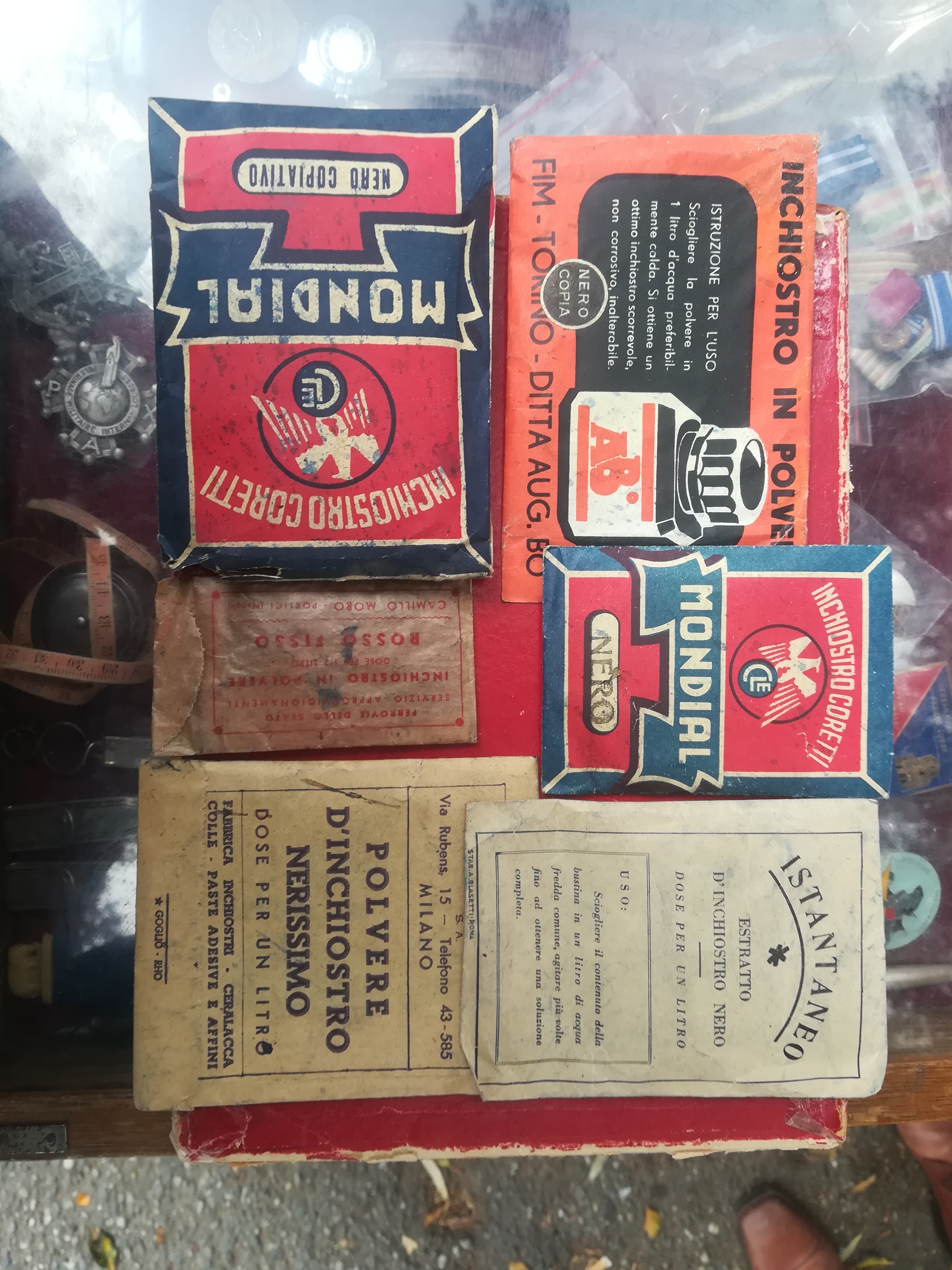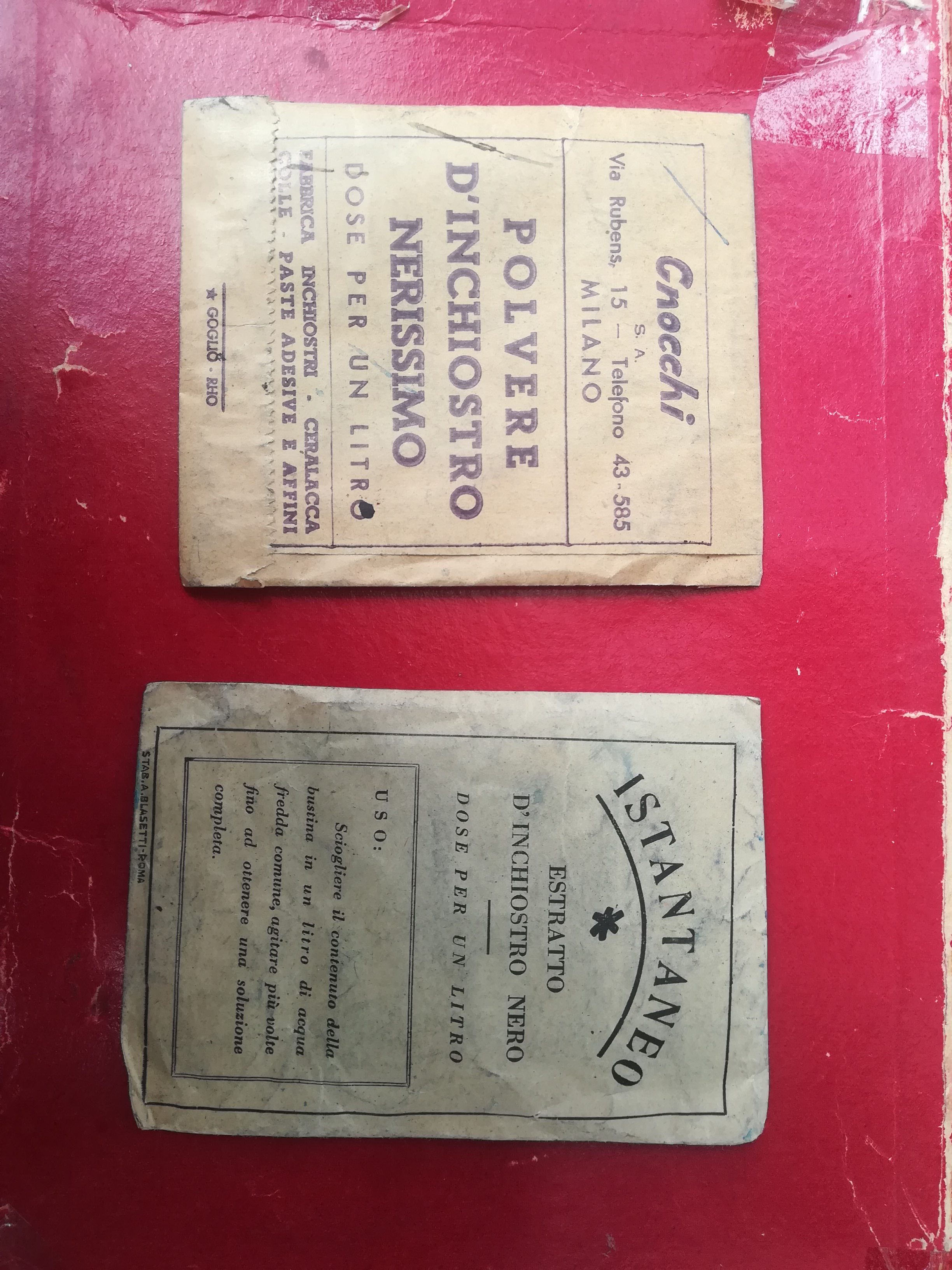 Da memorie mie: le suore avevano in un armadietto chiuso a chiave una bottiglia in vetro verde che serviva a riempire i calamai dei banchi (stessa tipologia di quelli descritti da Ricart, in legno, in un sol pezzo, verniciati di nero). Rocordo però nitidamente la marca "Gnocchi" su delle altre bottiglie custodite da una bidella.