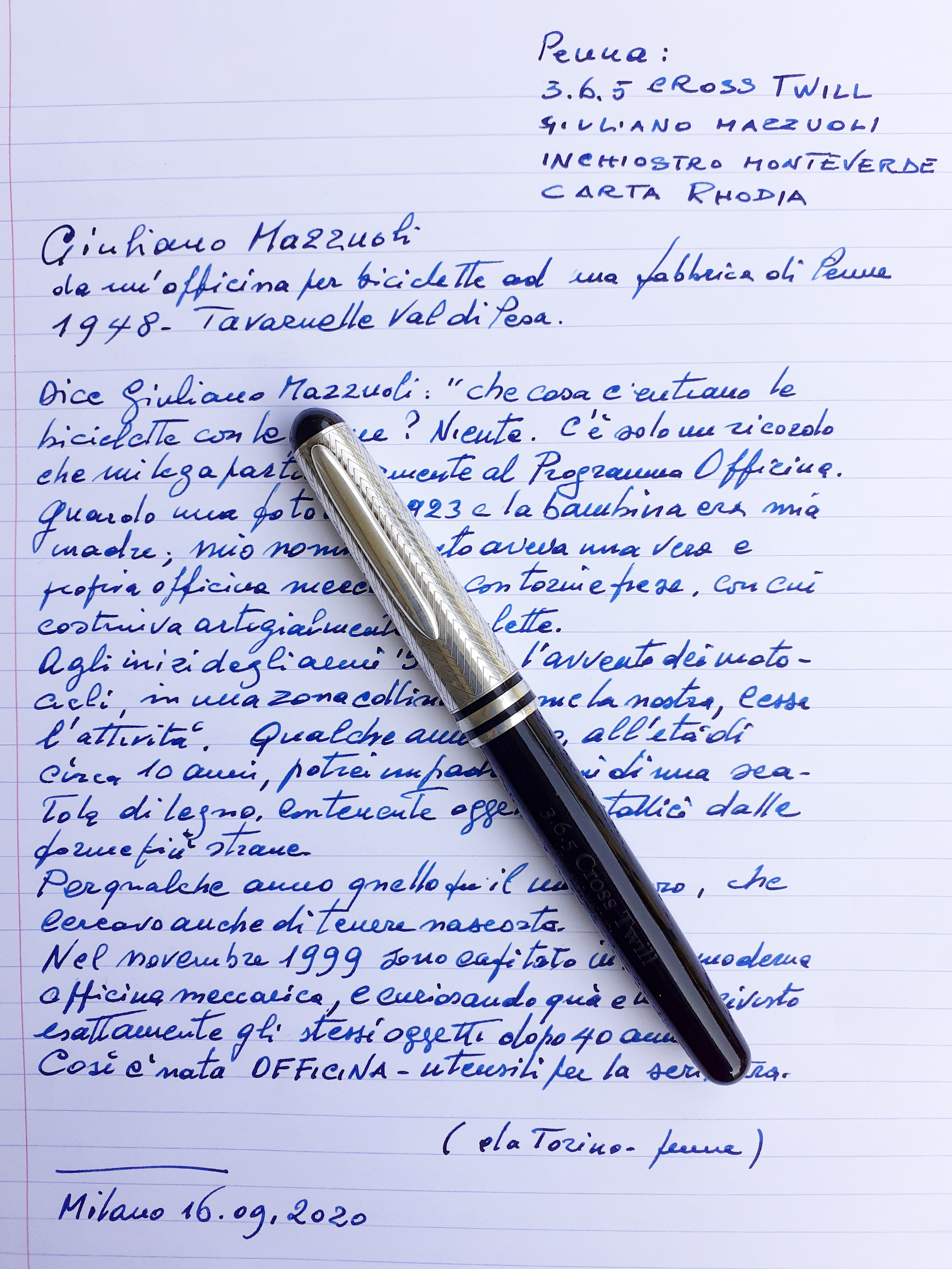 La penna è una 3.6.5. Cross Twill di Giuliano Mazzuoli.