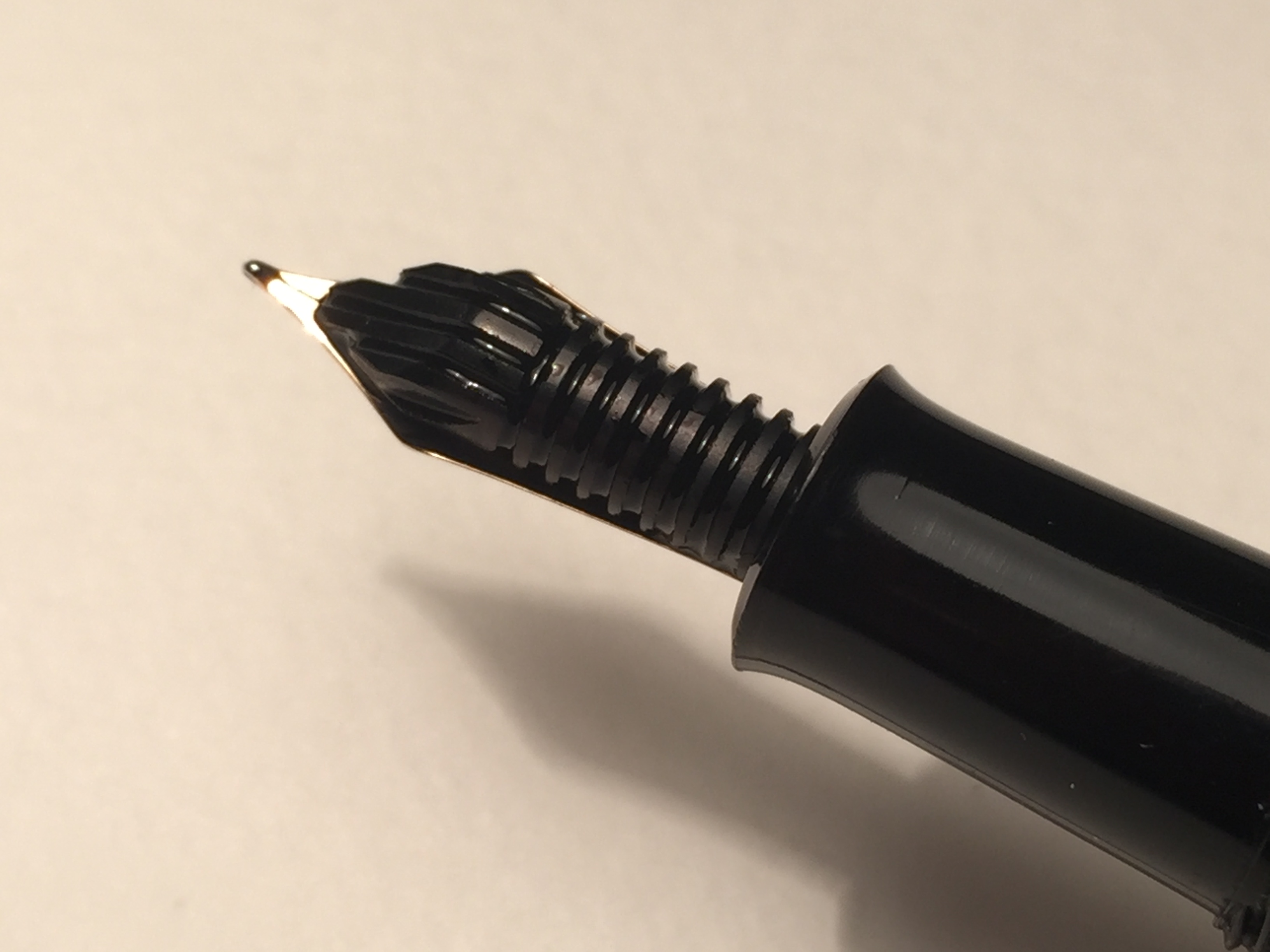 Il pennino è in oro 14 K con una bella incisione di un leone ruggente; sembrerebbe avere una certa flessibilità...vi lascio dare un occhio in basso.