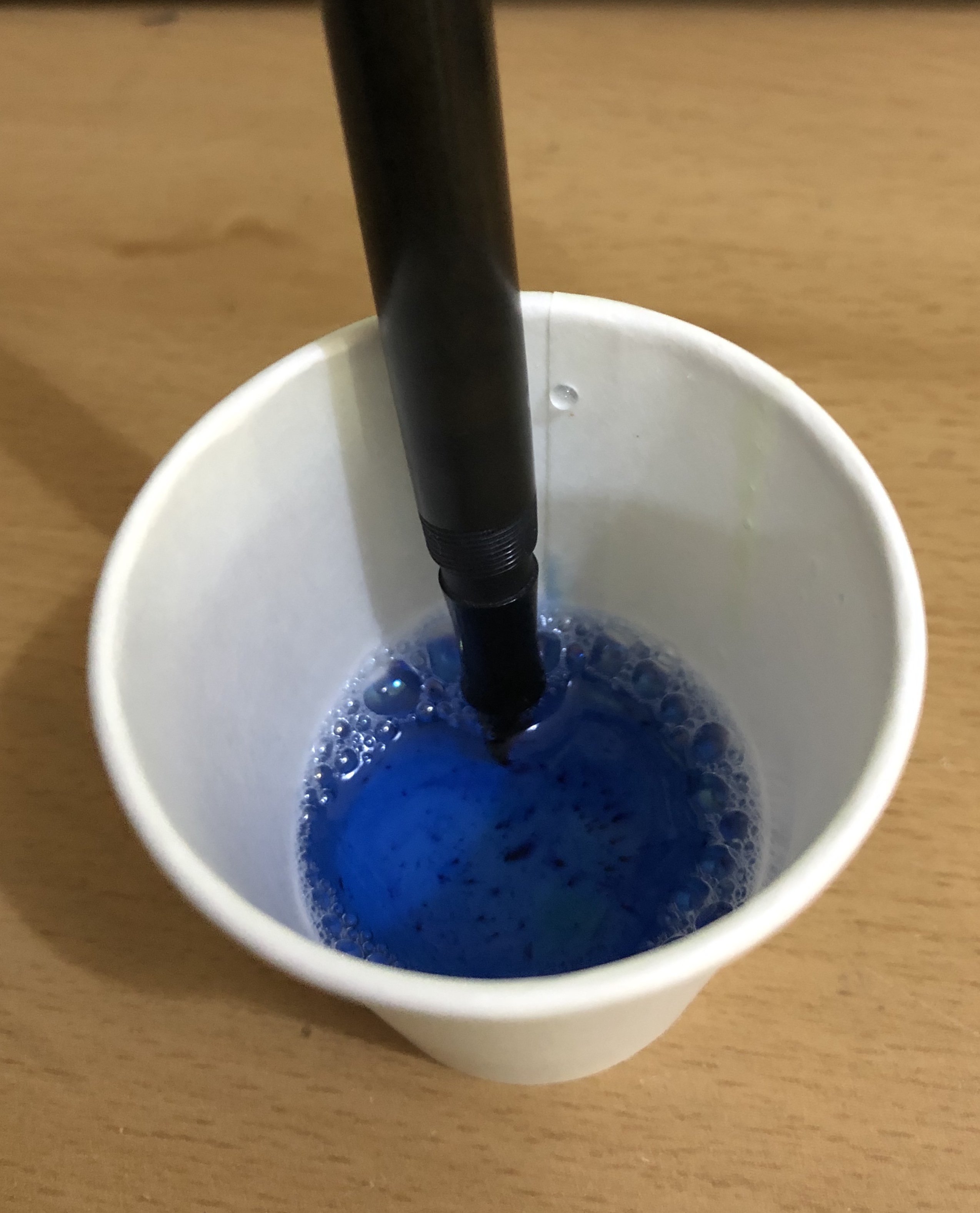 • prima fai immergere SOLO pennino-alimentatore (controllando il livello e, di conserva, cambiando spesso l'acqua) poi capovolgi ed immergi solo fino al "nipplo" (non ricordo come chiamarlo in italiano.... :( :crazy: ) dove si innesta il gommino