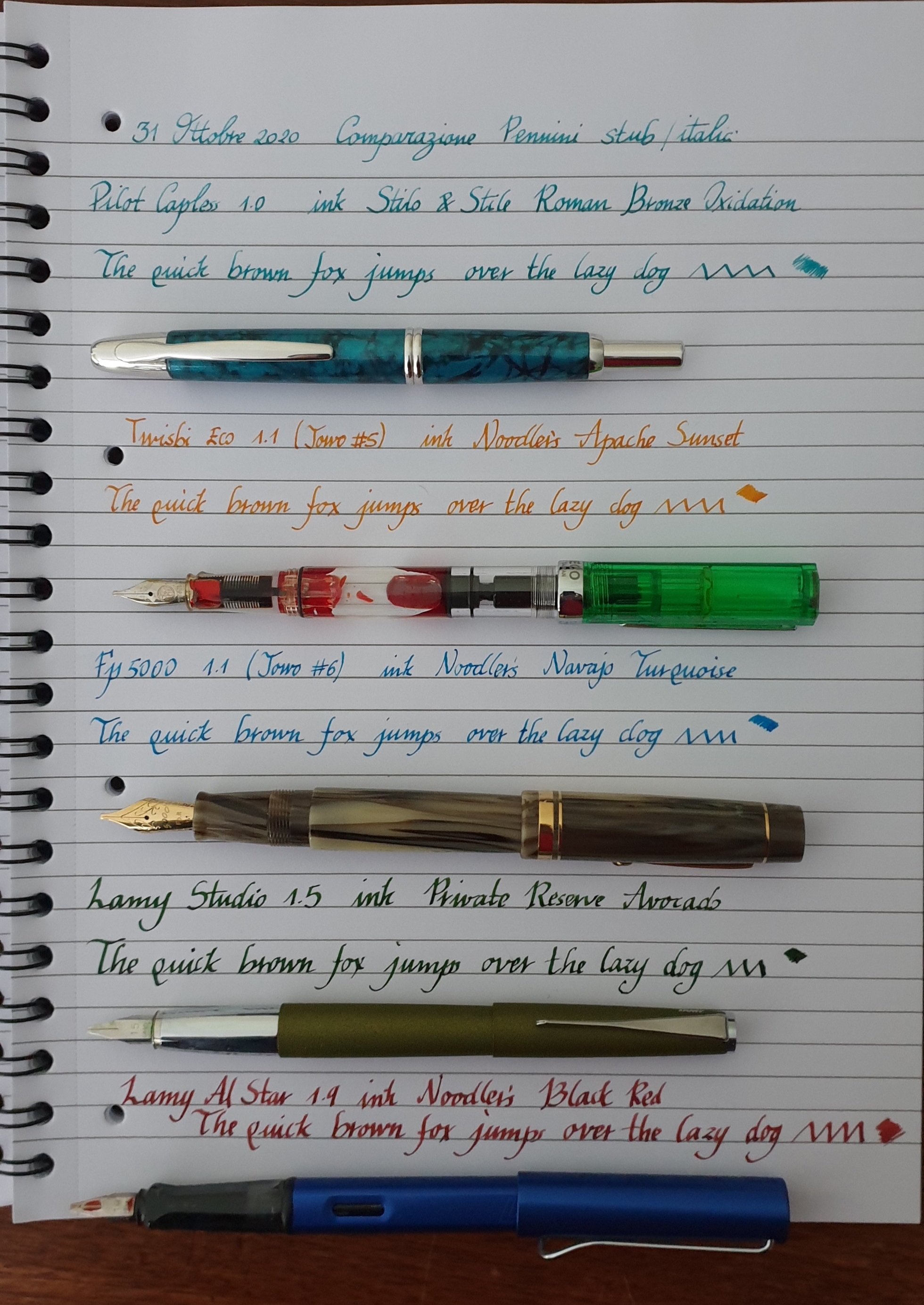 Gli inchiostri sono tutti diversi perché tutte le penne erano già cariche e non avevo voglia di buttare inchiostro/lavare tutto etc....Mi sono già sporcato le dita così