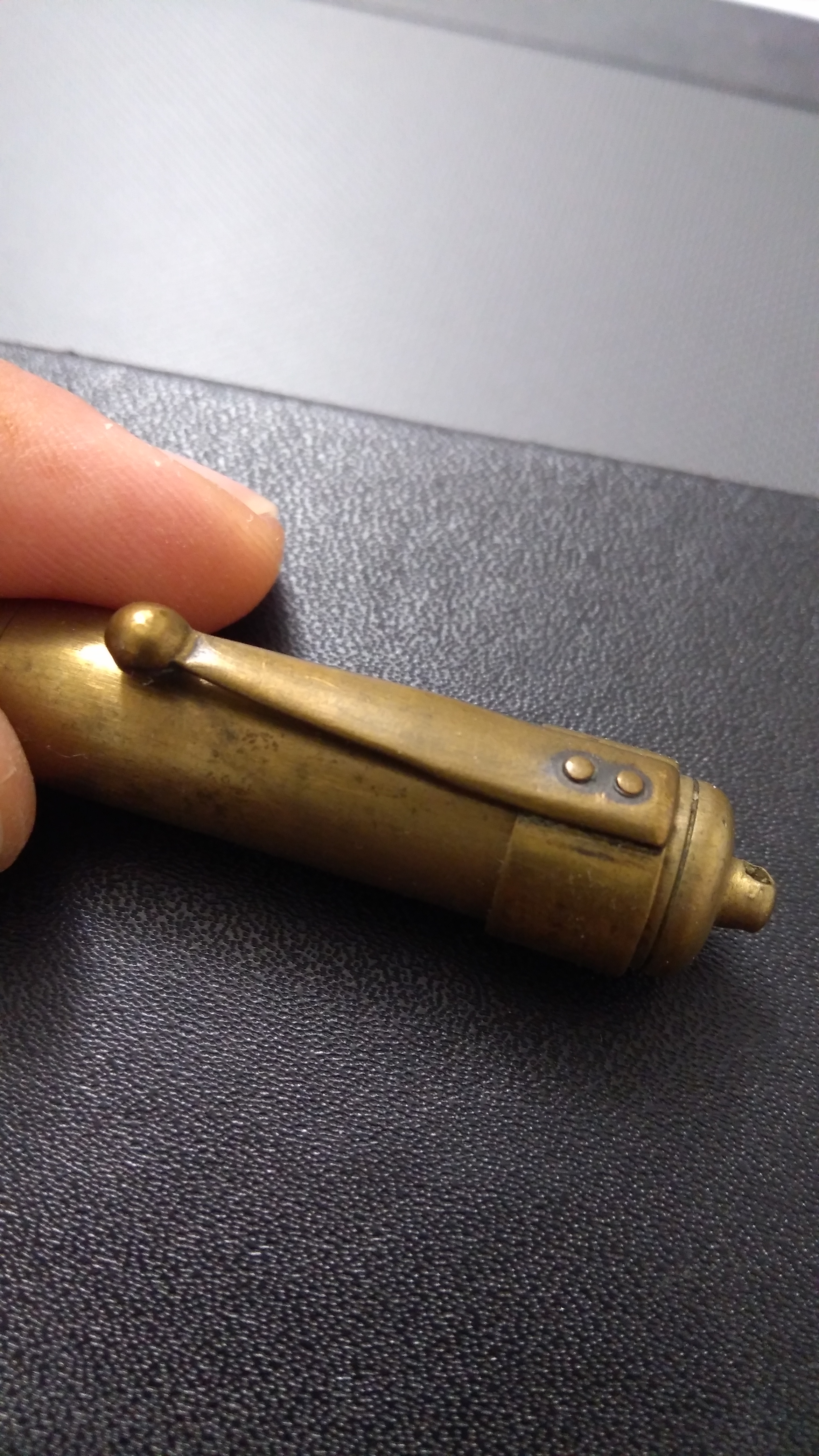 Credo che sia molto vecchia, è tutta in ottone e non ci sono saldature ma è ribattuta come potete vedere dalle foto.