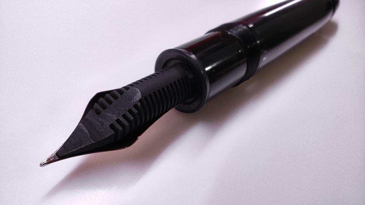 Ho provato ad intingere il pennino in un Pelikan 4001 black. Sembra un medio. Avrei preferito un tratto leggermente più sottile e spero che con il caricamento tradizionale e magari con un altro inchiostro si sfini un po'.