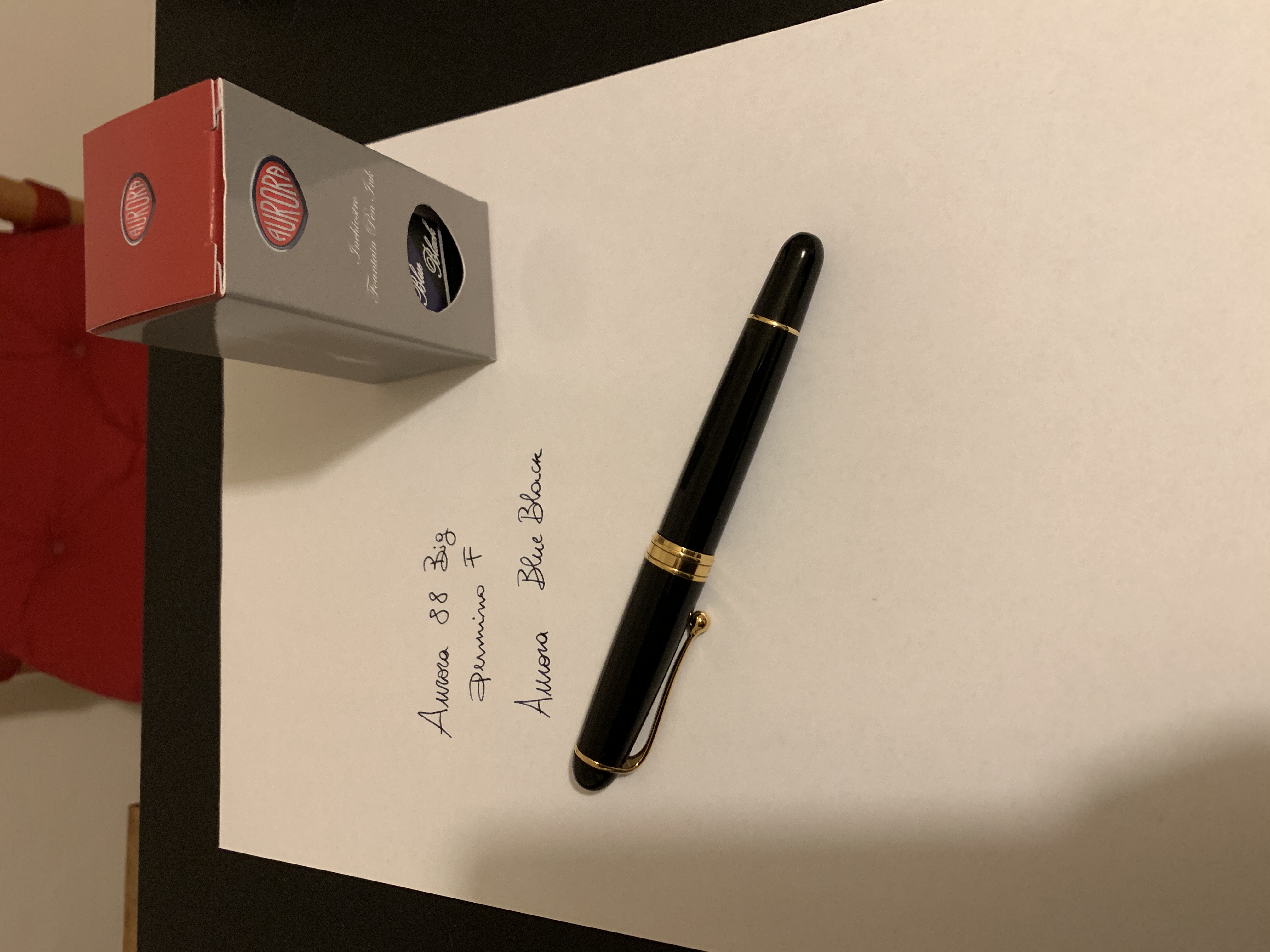 Apro questo topic sperando possa essere cosa gradita. Frequentando diversi forum anche su altri argomenti trovo divertente l’idea di una discussione in cui inserire l’ultimo acquisto da condividere. Ecco quindi che lancio la mia idea dell’argomento “il mio ultimo acquisto” dove poter condividere la foto di ciò che abbiamo appena comprato. La mia idea non include solamente penne e strumenti a esse collegati, ma intanto comincio  con l’acquisto odierno frutto di una visita in un negozio del centro di Bologna. Una bella confezione di Aurora Blue Black che ho subito caricato nella mia Aurora 88 Big fresca di pulizie
