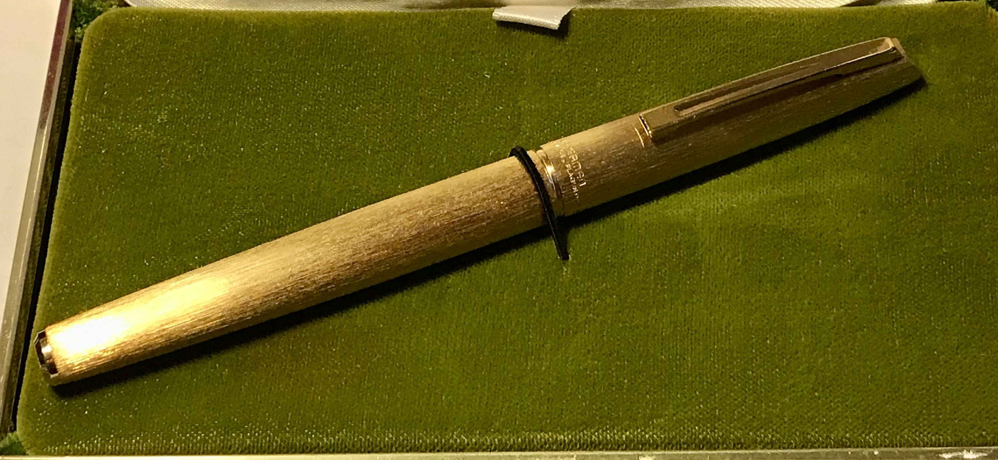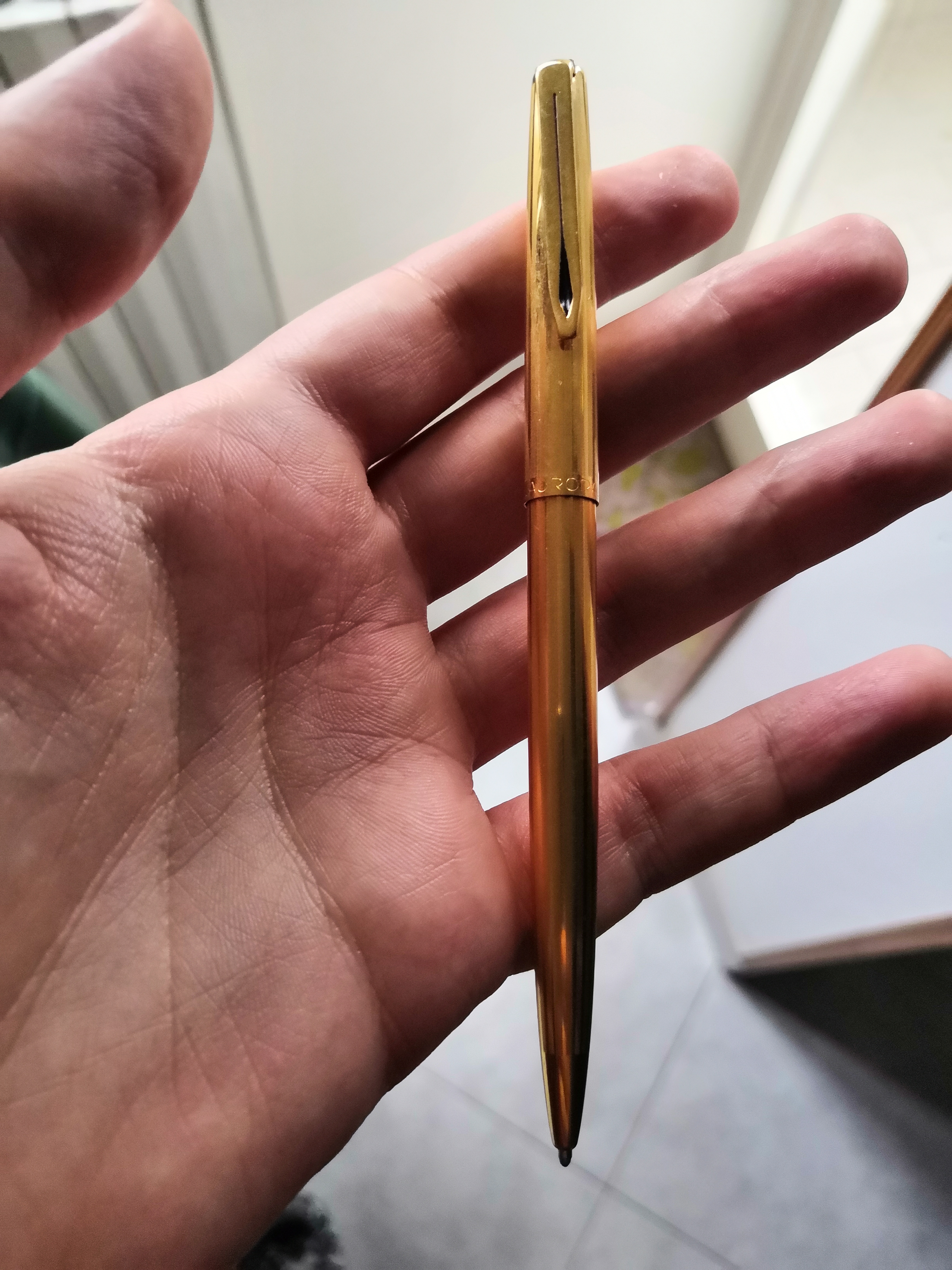 I miei ultimi acquisti sono stati una Aurora 98 riserva magica, dorata millerighe, regalata alla mia ragazza, e una Aurora 98 a sfera per me. Natale e il dorato vanno particolarmente d'accordo  . Come stilografiche, l'ultima che ho acquistato è una Parker 51 aerometric, con un pennino molto fine e rigido, del 1946. Forse ho beccato un accountant