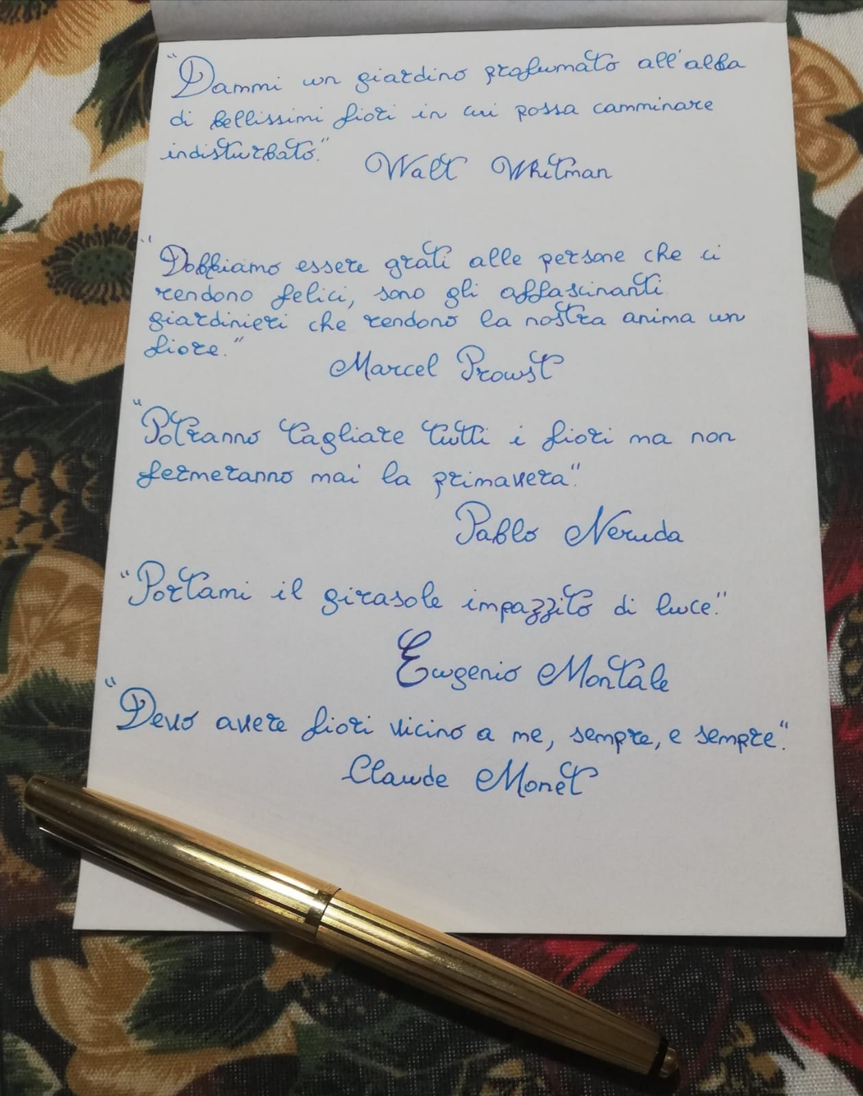 Naturalmente, la scrittura non è la mia, sono citazioni scritte dalla destinataria della 98. Io come autoregalo ho preso un orologio, un Invicta 8928, e mi è stato regalato un altro orologio, un Breil moonphase. Orologi e stilografiche stanno bene insieme.