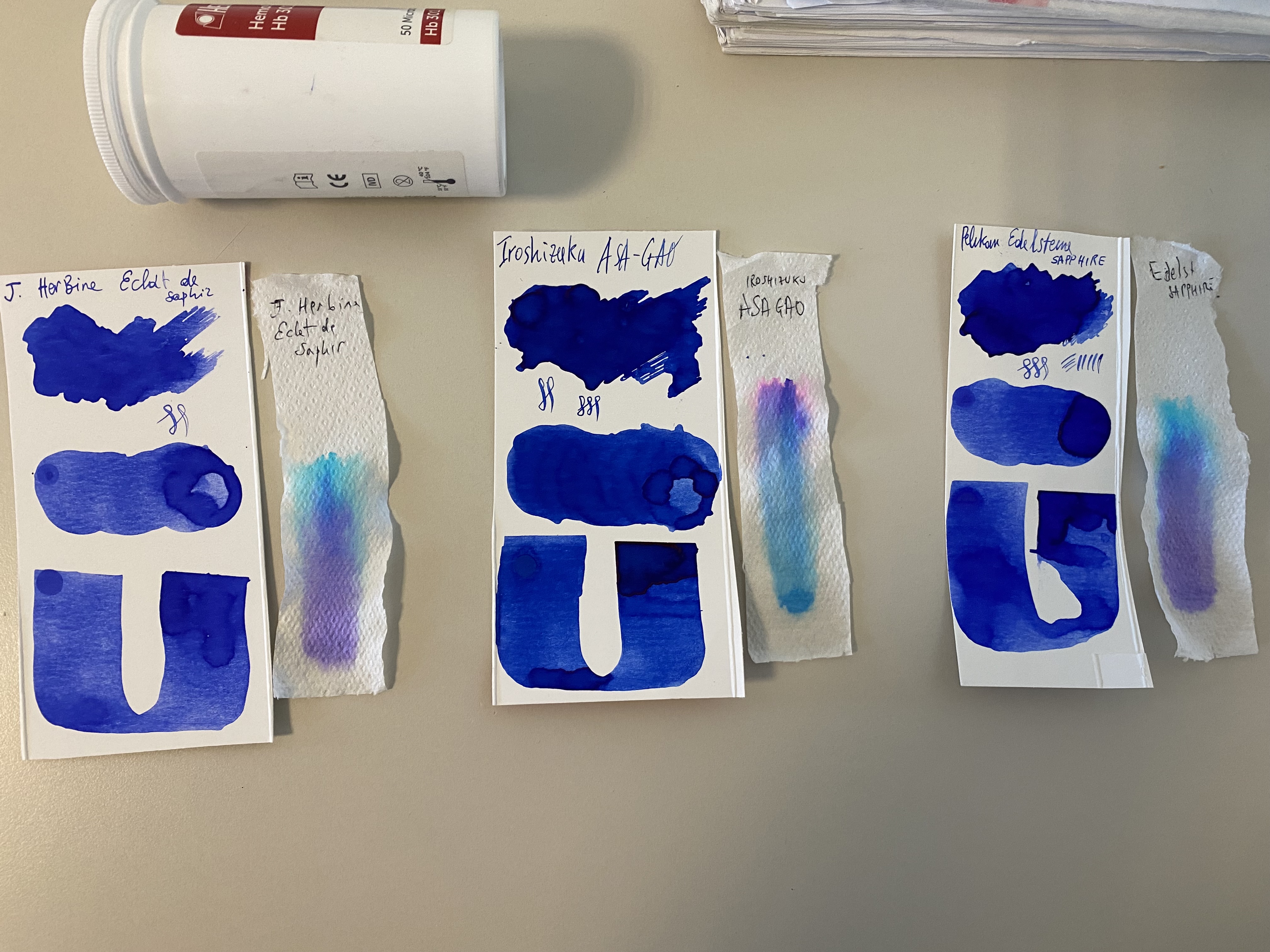 L'Èclat de Saphir è uno di quelli inchiostri che risente della penna in cui viene usato. Su alcune si avvicina molto ad un classico royal blue come colore, ad esempio in questo caso, su altre è un blu zaffiro brillante, più saturo e meno violaceo.