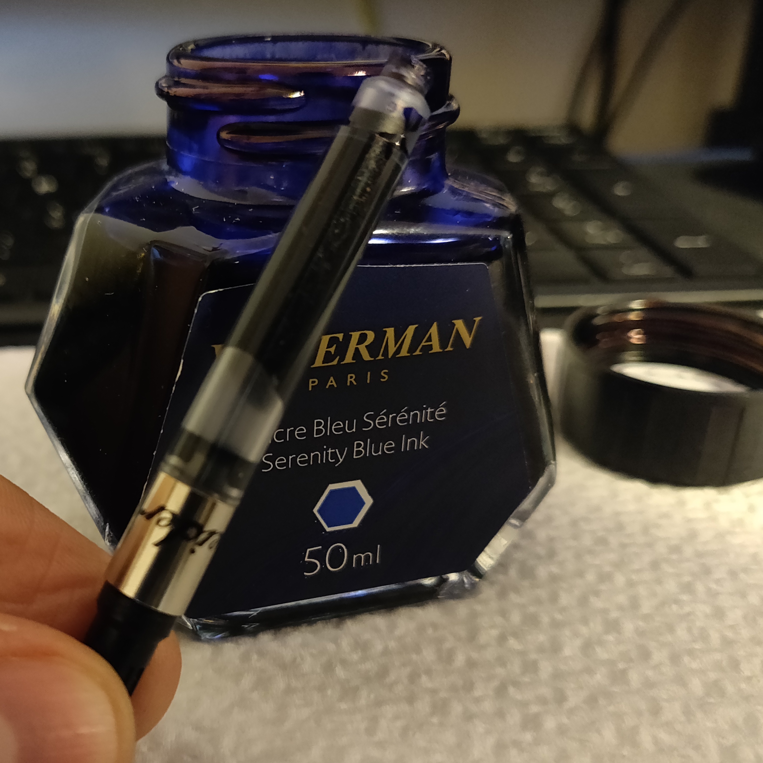 In ogni caso, non è scritto da nessuna parte che devi usare per forza questo blu. Io non comprerei il secondo calamaio con il rischio di avere lo stesso problema. Proverei un altro inchiostro, tanto di blu ce ne sono infiniti.