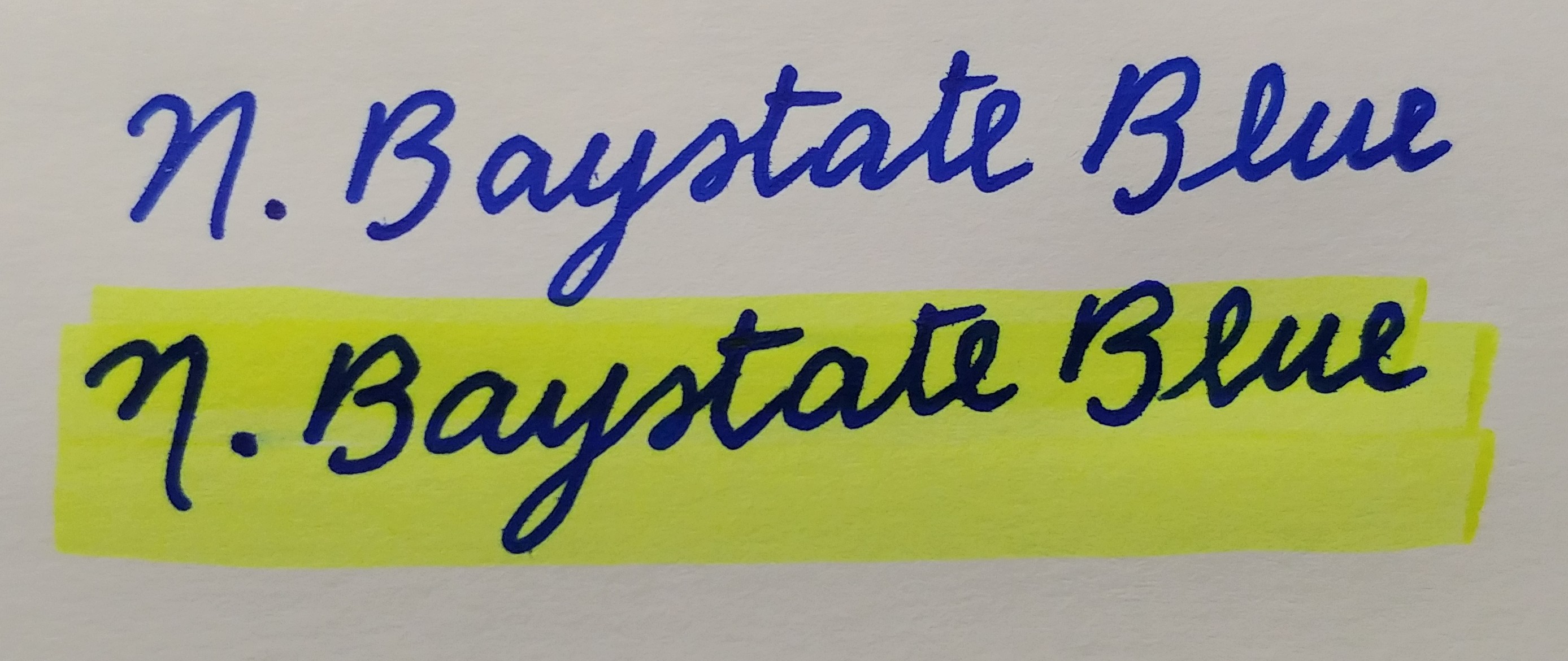 Di norma, gli inchiostri indelebili dovrebbero andar bene tutti. Il Noodler's Baystate Blue, da asciutto, non fa una piega: