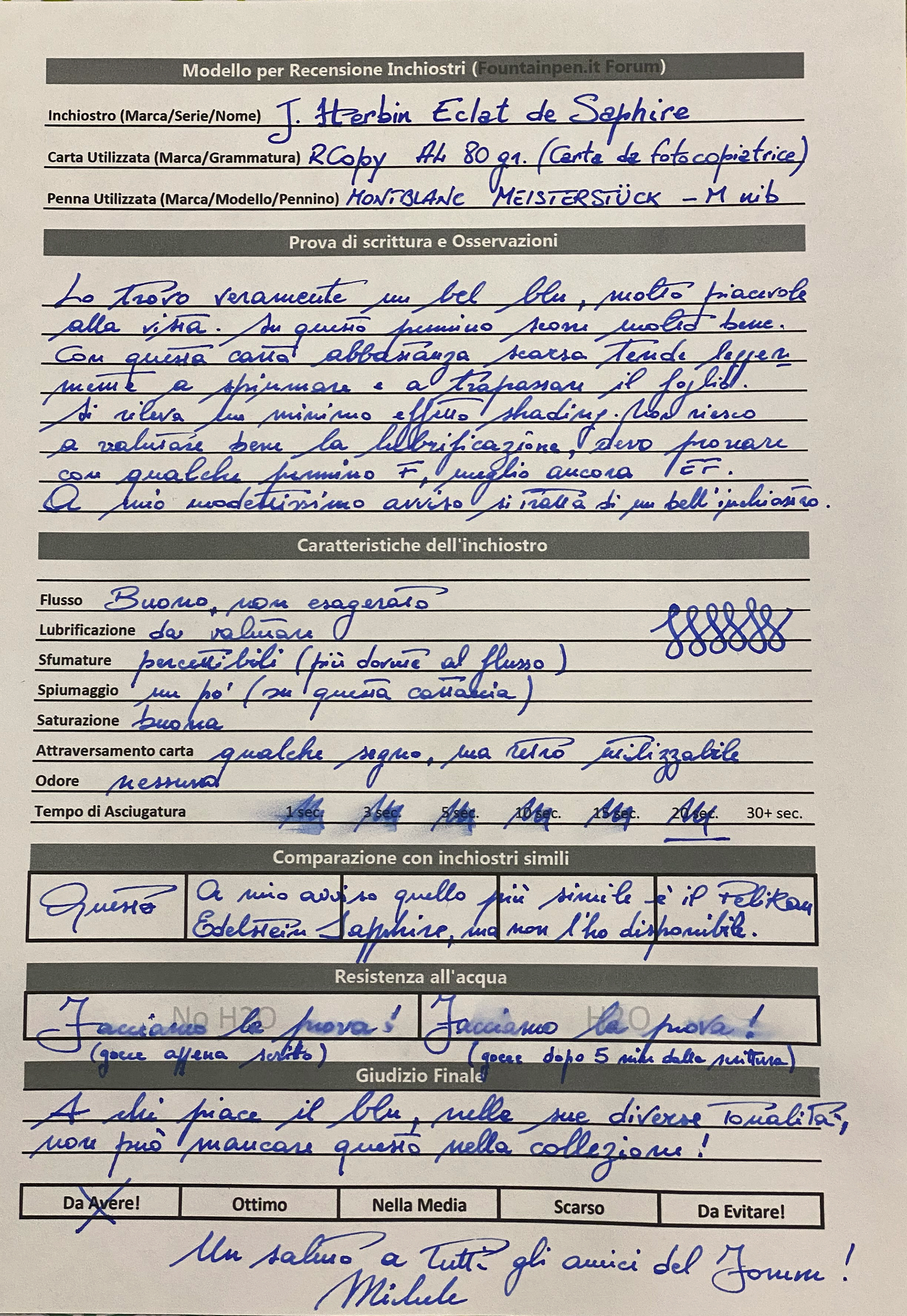 Una alternativa valida è il Sapphire blu di Diamine, ma il JH mi piace un pelo di più.