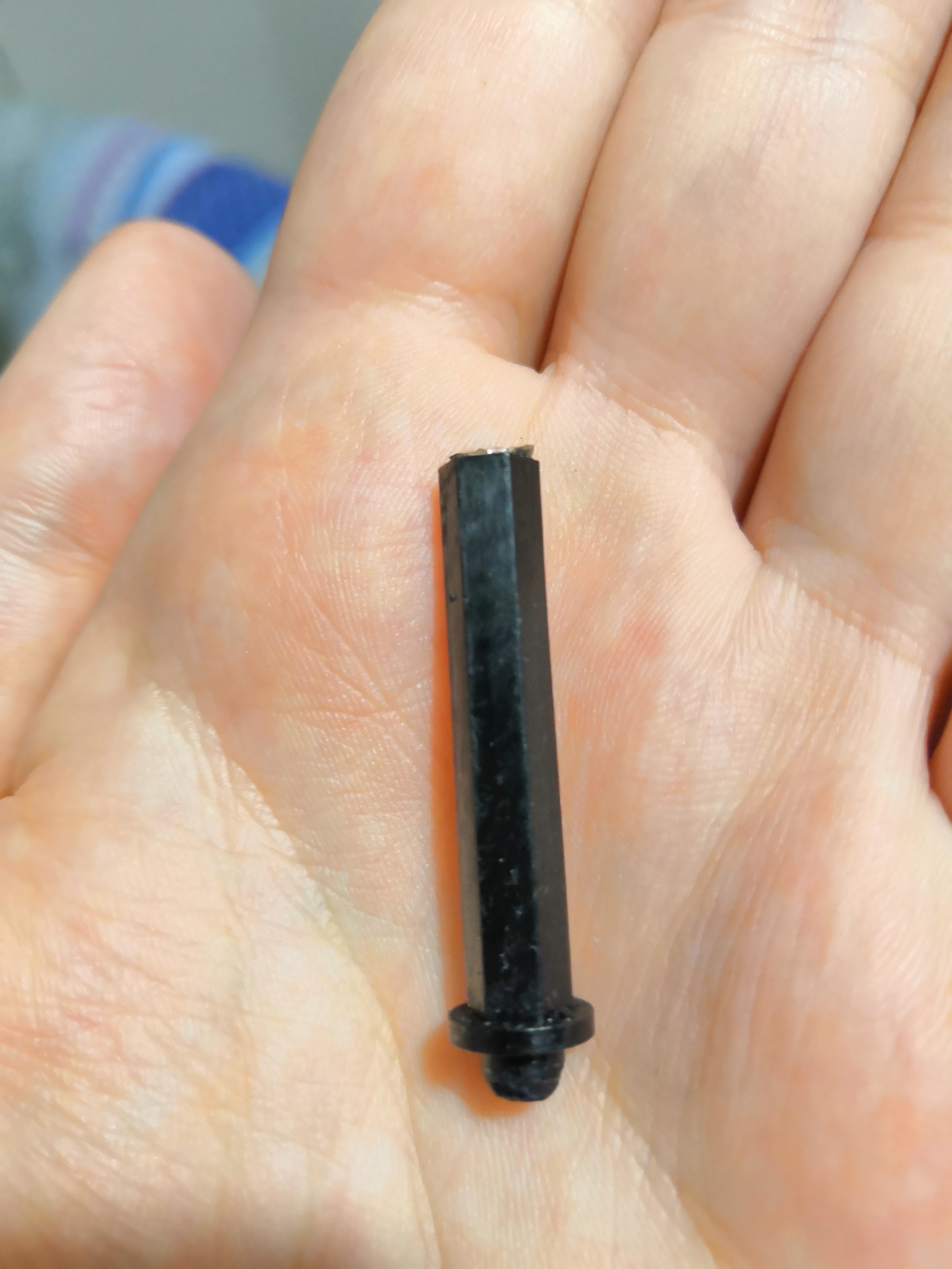 Vi aggiorno sulla situazione. Dopo aver aperto la penna, mi trovo con un pistone in condizioni come da foto. Parte della filettatura, come a volte accade, è rimasta nella rondella. Svitando la sezione ho solo dato un paio di colpetti sul fondello e il pistone è venuto fuori, con la rondella che si è staccata da sola. La parte posteriore del pistone mi pare strana, con una specie di "bavetta", ma non so se è rotto, dalla penna non soo venuti fuori pezzi o residui e non mi pare siano attaccati alla madrevite. Che ne dite?