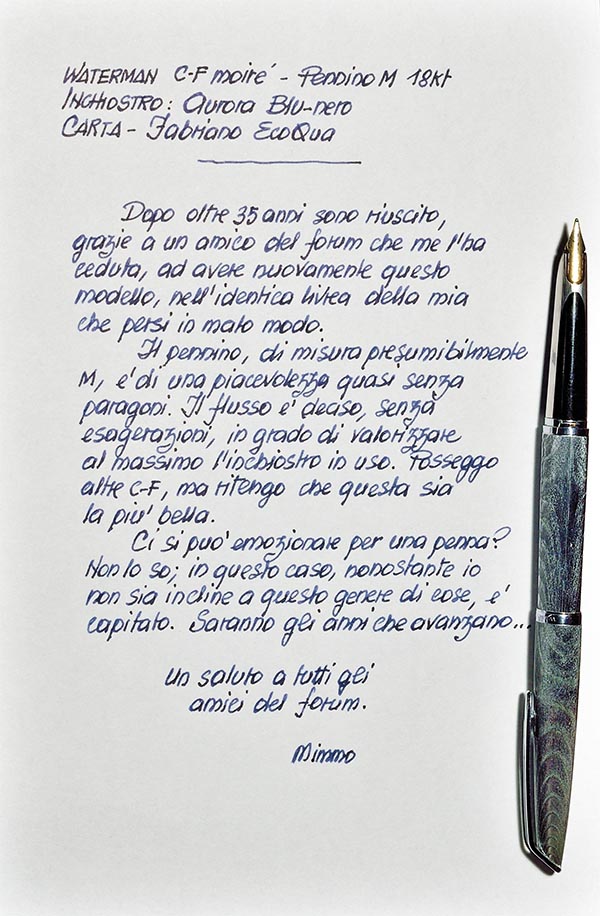 Arrivata praticamente in un giorno; alla fine, volendo farle bere un blu-nero, considerando le caratteristiche dell'esemplare, ho optato per il blu-nero Aurora.