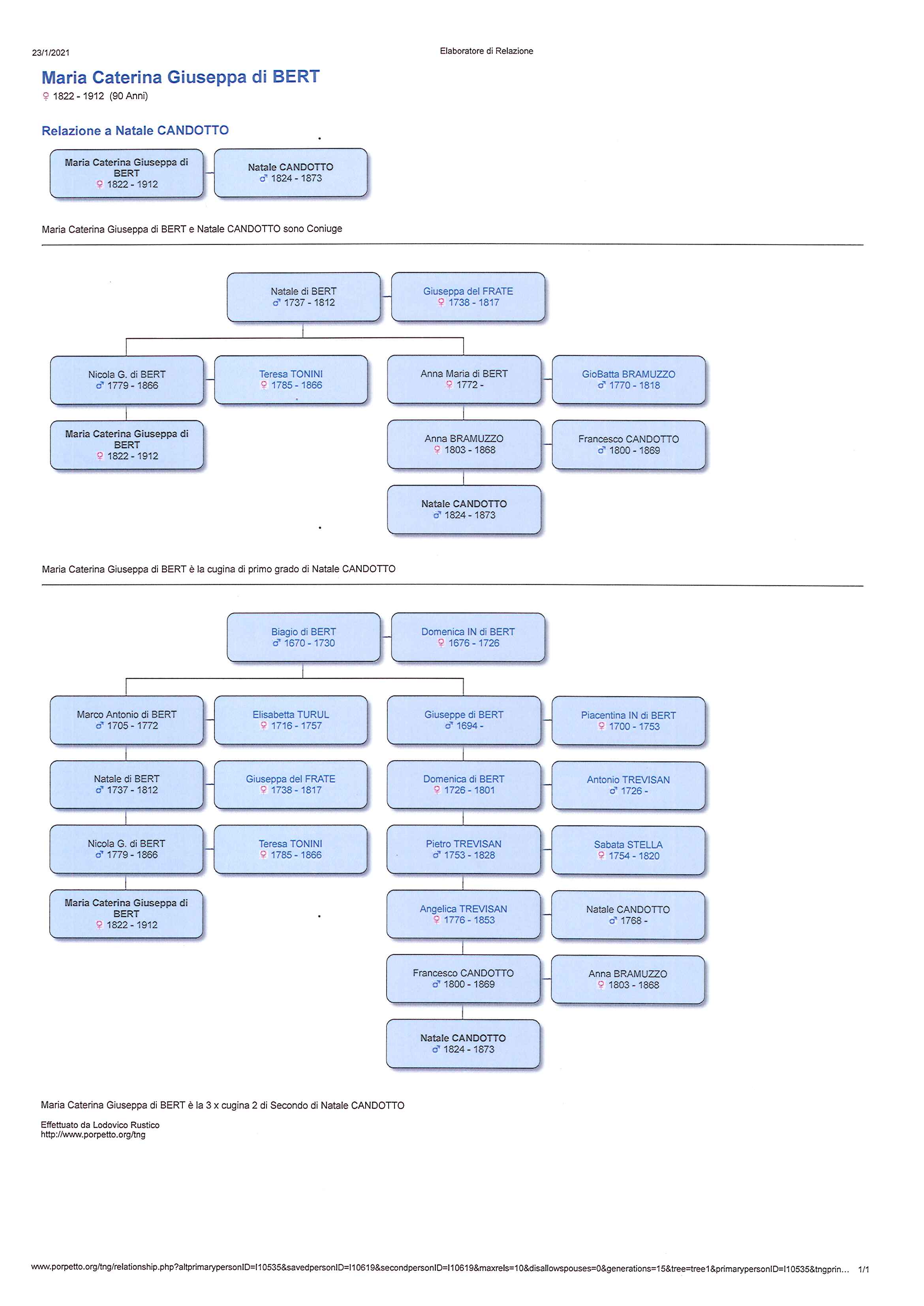 3) Quindi Maria Caterina Giuseppa di Bert non è la cugina di Natale Candotto ma della di lui madre Anna Bramuzzo.