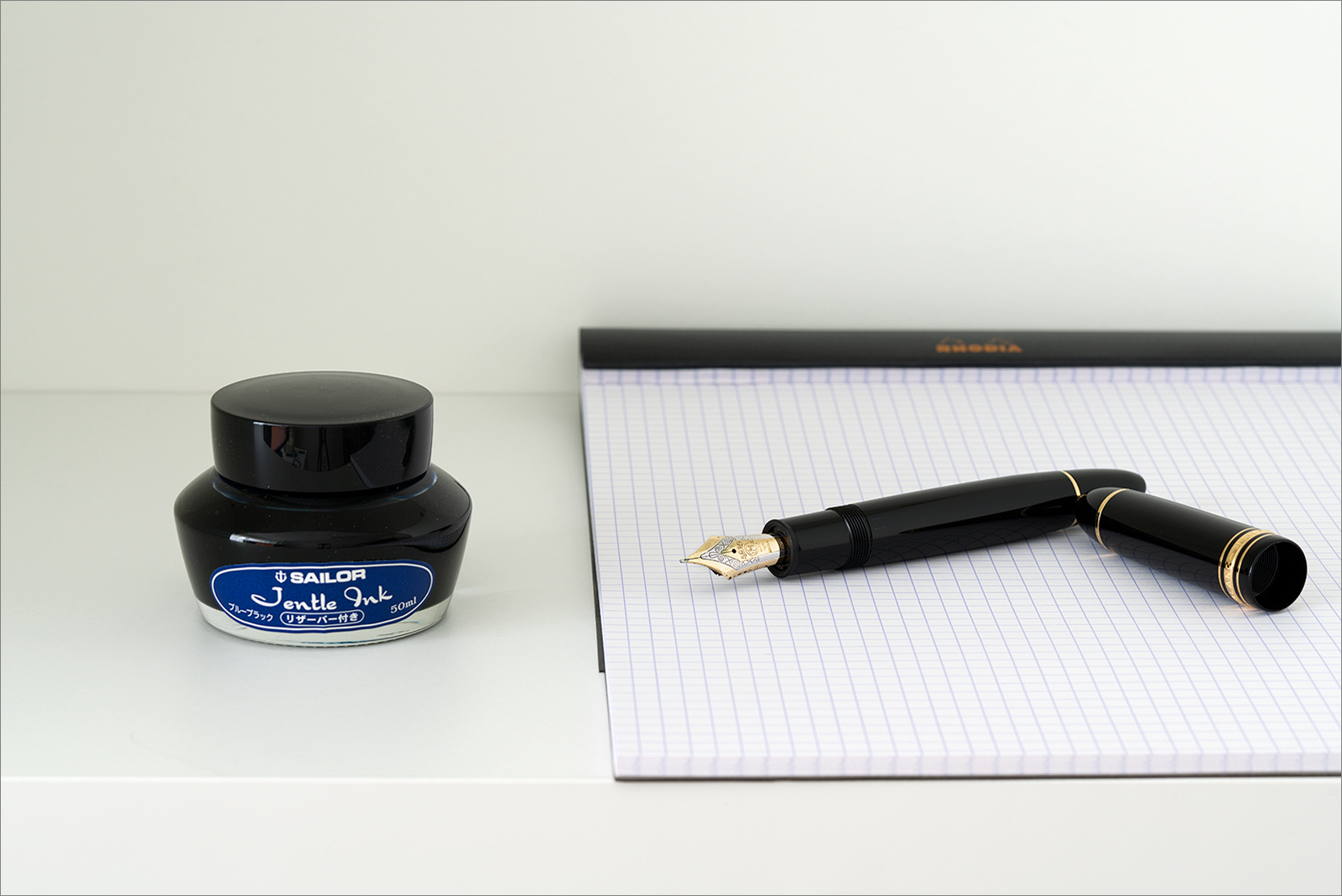 Il jenttle blu black va assolutamente evitato in penne europee di questa caratura e flusso, lascialo stare è un inchiostro da giapponese, io andrei con uno montblanc o con quelli citati che di sicuro sono stati provati in penne dal flusso importante, oppure con un lamy blu black l'aurora blu black non lo conosco ma essendo meno liquido dovrebbe migliorare le cose secondo me hai invertito gli inchiostri la sailor aprrezza il suo sailor jentle blu black.