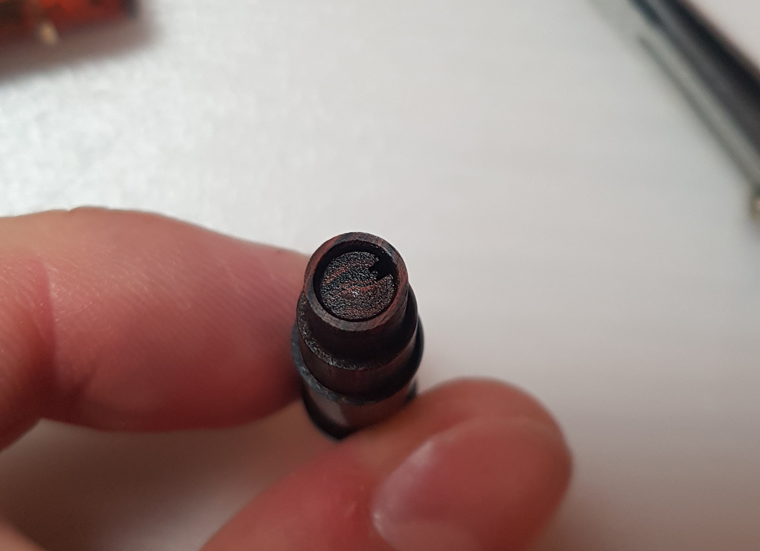 Per rimuovere il pennino bisogna usare un blocco di estrazione con cui battere delicatamente l'alimentatore da dietro con un punzone (piatto). Questo è il mio che ho copiato da Massimo