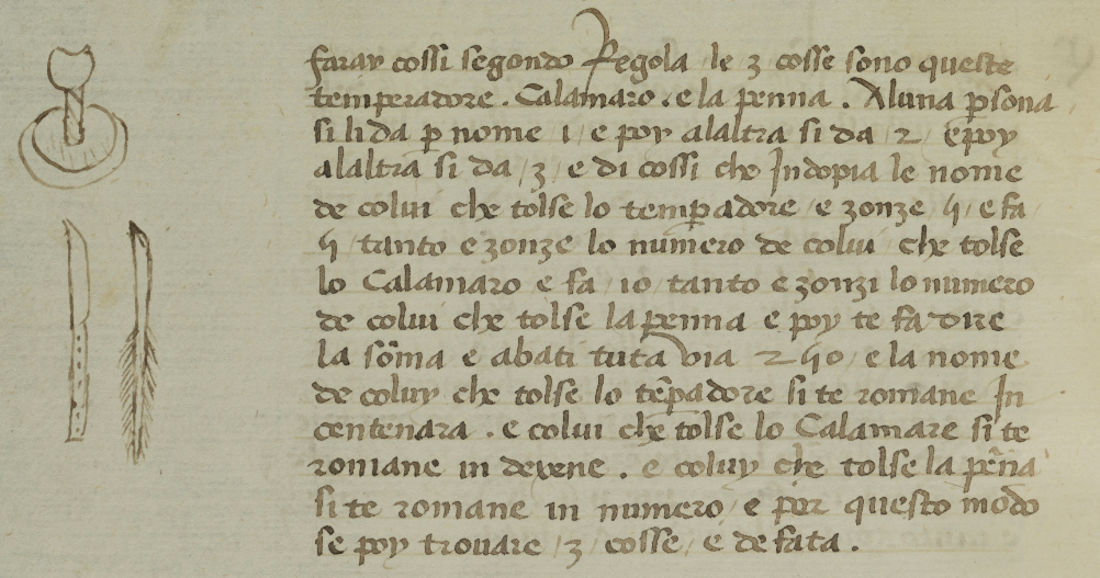 Faray cossi segondo Regola le 3 cosse sono queste temperadore calamaro e la penna. Alcuna persona si li da per nome 1 e poy alaltra si da 2 epoy