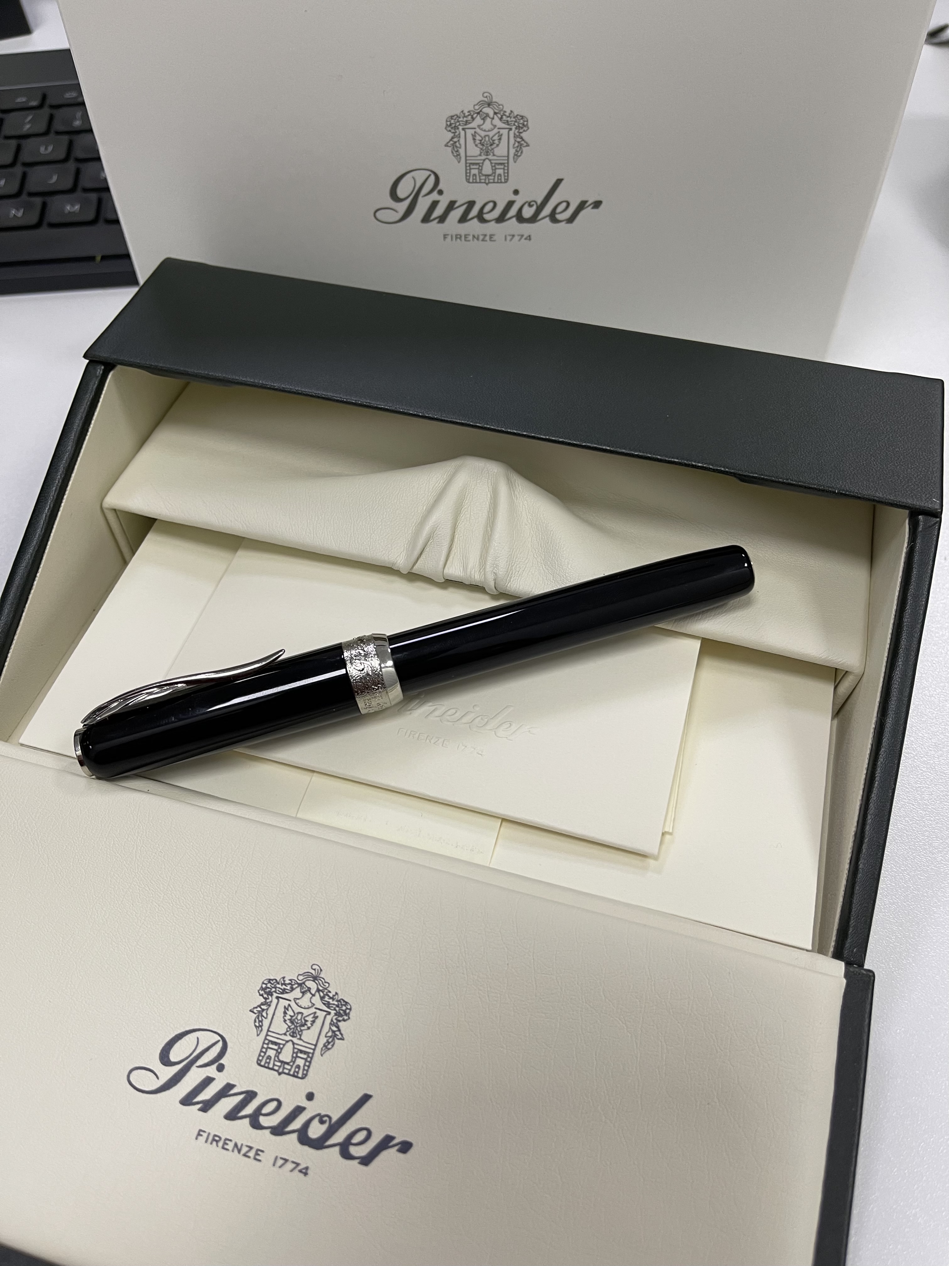 Splendida penna e..splendida confezione! Sempra un piccolo scrittoio