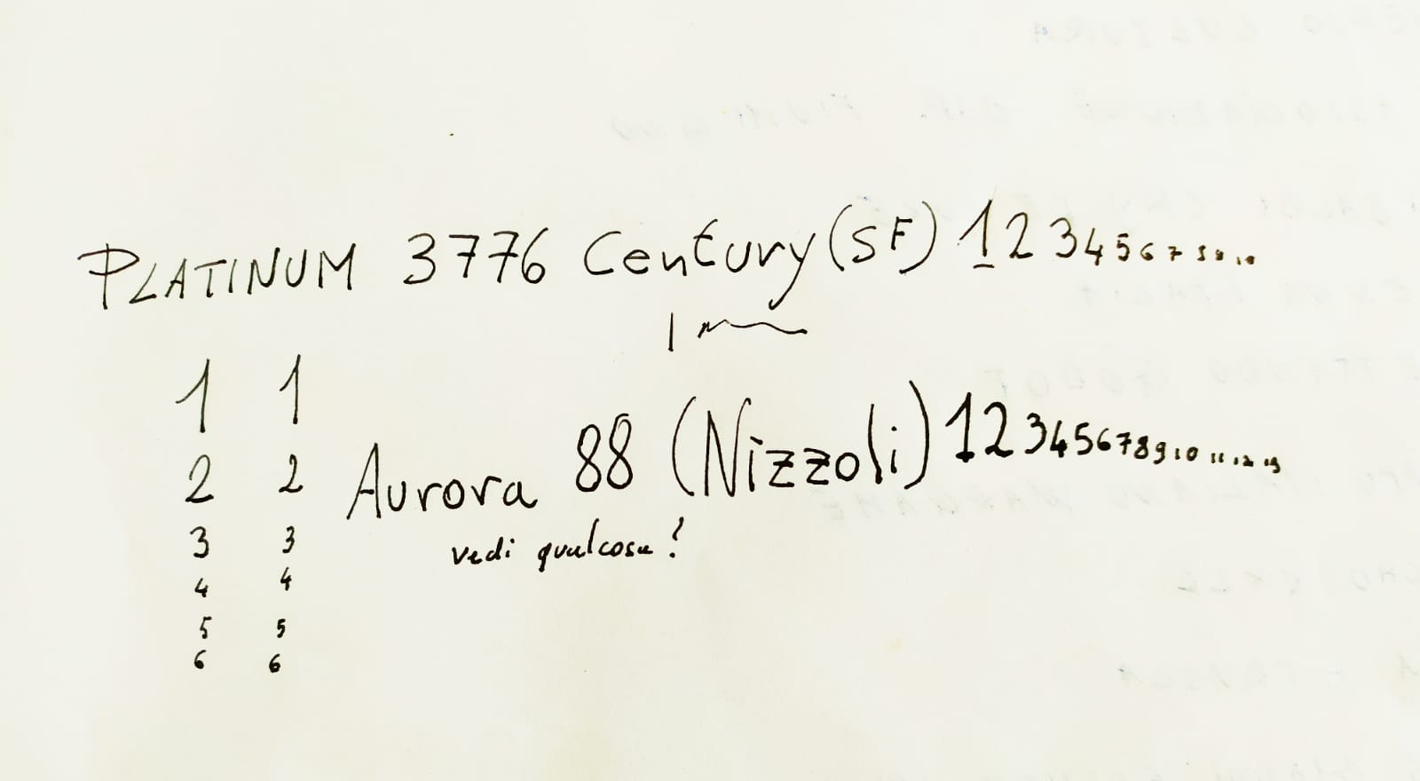 La 3776 non è stata ancora ricaricata, sia l'Aurora sia la Platinum si portano appresso il loro sabbioso Diamine Jet Black (assai problematico), la vintage non pare risentirsene, la Platinum 3776 Century è ottima, le problematiche iniziali (una lenta ripartenza iniziale) hanno soluzione, non era mia intenzione fare confronti, sono due strumenti assai diversi.
