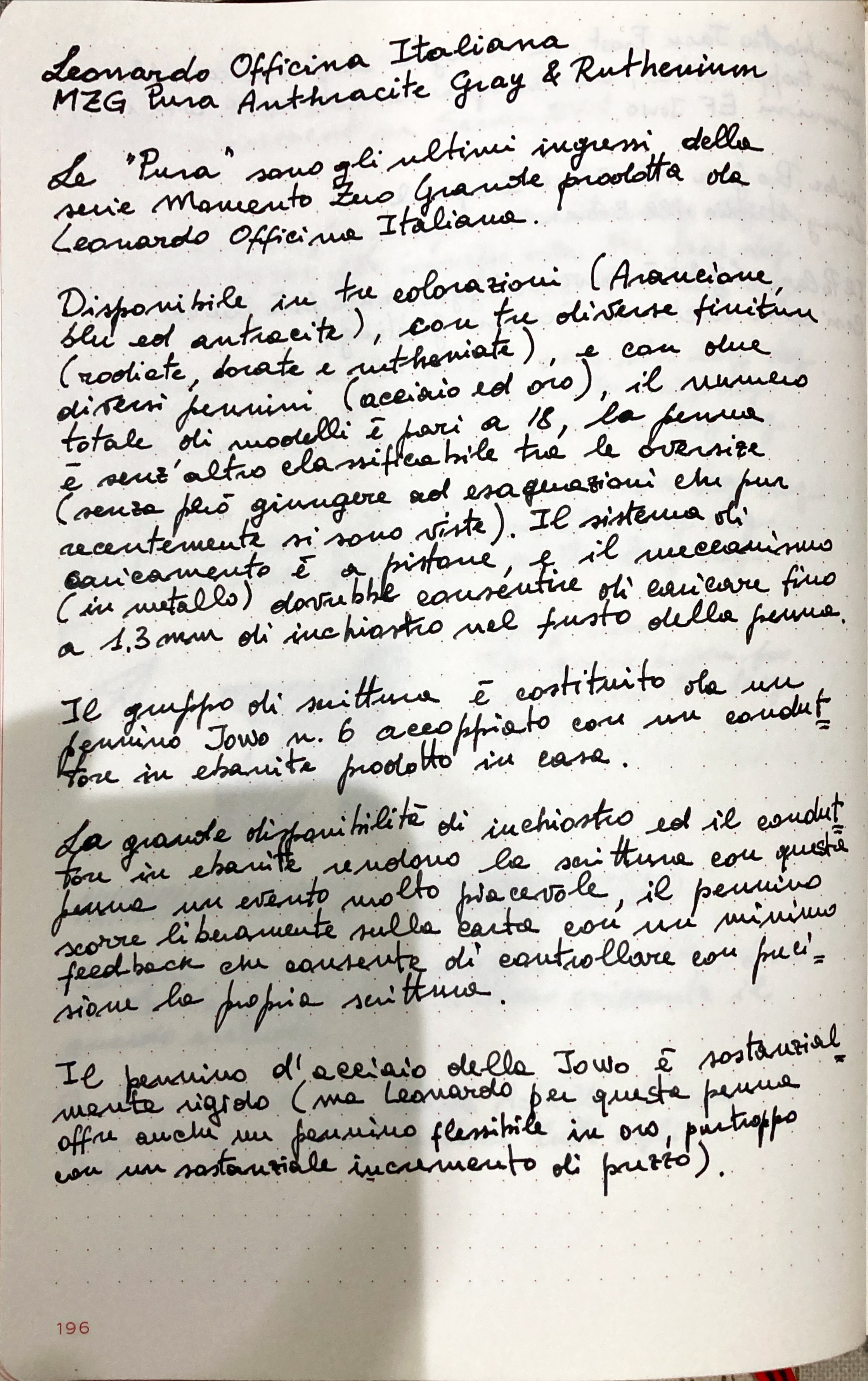 Anch'io di solito non preferisco le penne trasparenti, questa è stata un po' un eccezione. Se ci fosse stata una all black rutheniata forse l'avrei preferita. Invece questa colorazione mi piace di più di quelle più fantasiose delle altre MZG.Spiller84 ha scritto: ↑mercoledì 24 marzo 2021, 21:32 Ottima recensione. Riguardo alla penna, credo di preferire quelle con resine più fantasiose, ma anche quelle più semplici ma opache. Tutto questo in foto e in osservazioni in vetrina, non le ho mai provate quindi il mio parere è poco circostanziato. Ma in genere preferisco le penne opache a quelle trasparenti o traslucide, sono un po' di parte