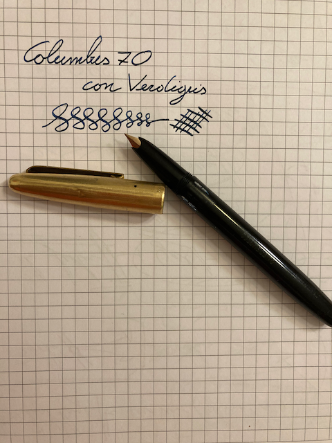 Abbiamo poi la Columbus, su cui non ho ancora avuto modo di fare ricerche... il cappuccio è messo male, scolorito e segnato. Ma il corpo sembra ok, ed il pistone si muove bene.