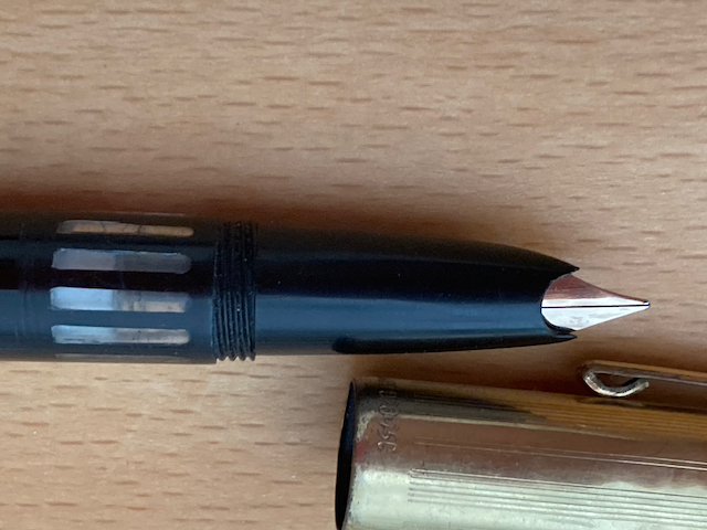 Pulita ed asciugata, caricata con il R&K Verdigris. Provata. Mi ha stupido positivamente il pennino... i rebbi si aprono con poca pressione, e il tratto è molto vario. Si definisce "flessibile"?