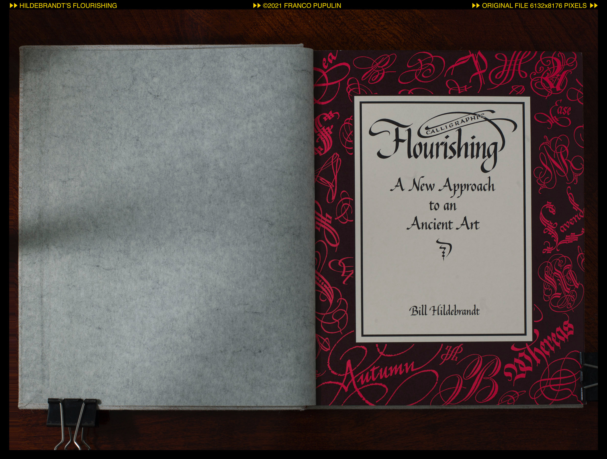 Tempo addietro scoprii che esisteva un libro, pubblicato ormai 25 anni orsono, che poteva forse fare al caso mio, affrontando la “teoria della fioritura”. Calligraphic Flourishment - A new approach to an ancient art, di Bill Hildebrandt, risultò però essere un libro alquanto elusivo. Stampato a Boston nel 1995, il libro deve avere avuto una tiratura piuttosto limitata, oppure deve essere stato così valido da essere letteralmente andato a ruba, perché il risultato non cambia: trovare una copia del libro di Hildebtandt suona come una piccola impresa.