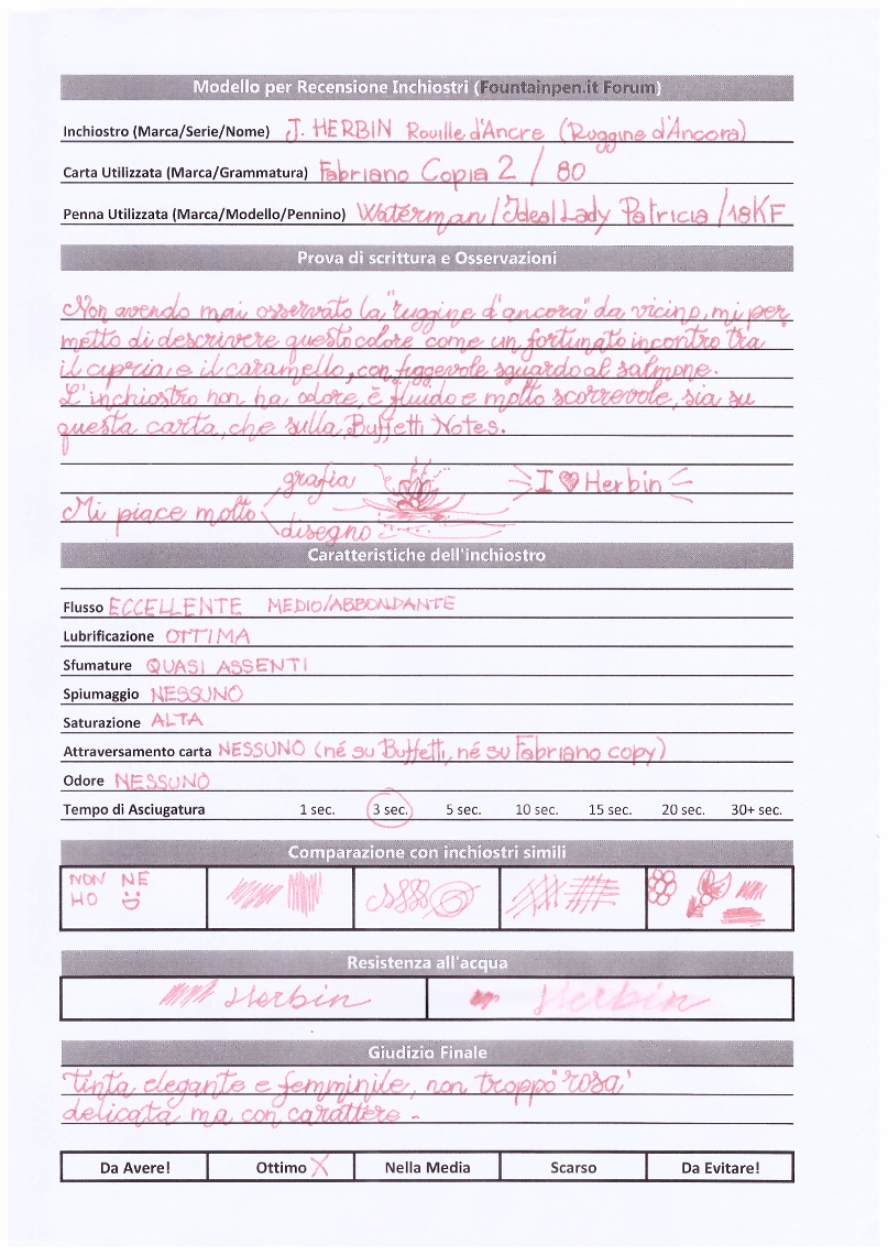Il negozio è piccolo, ma accogliente e pieno di tesori; sono entrata decisa a prendere Rouille d'Ancre, ma è stato difficile comprare solo questo: la varietà di colori, calamai allineati e prove su carta mi hanno complicato la scelta. Beh! Per farla breve ho riempito una cartuccia vuota della Waterman e caricato Lady P.