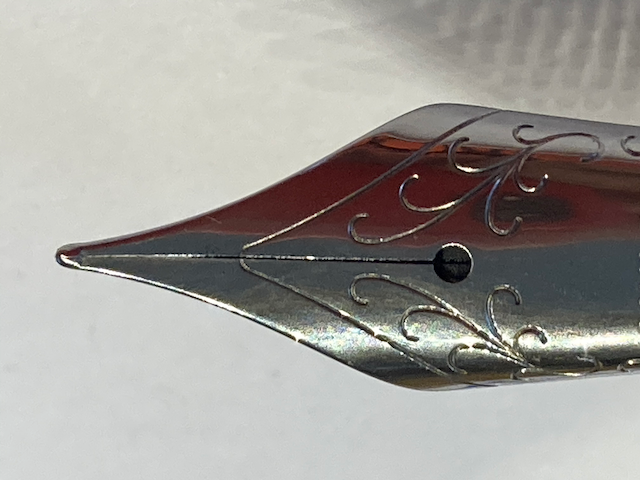 Ad un'osservazione da vicino, sembra che lo spazio tra i due rebbi del pennino non sia omogeneo... in alcuni punti è minimo, in altri il solco è piuttosto ampio.
