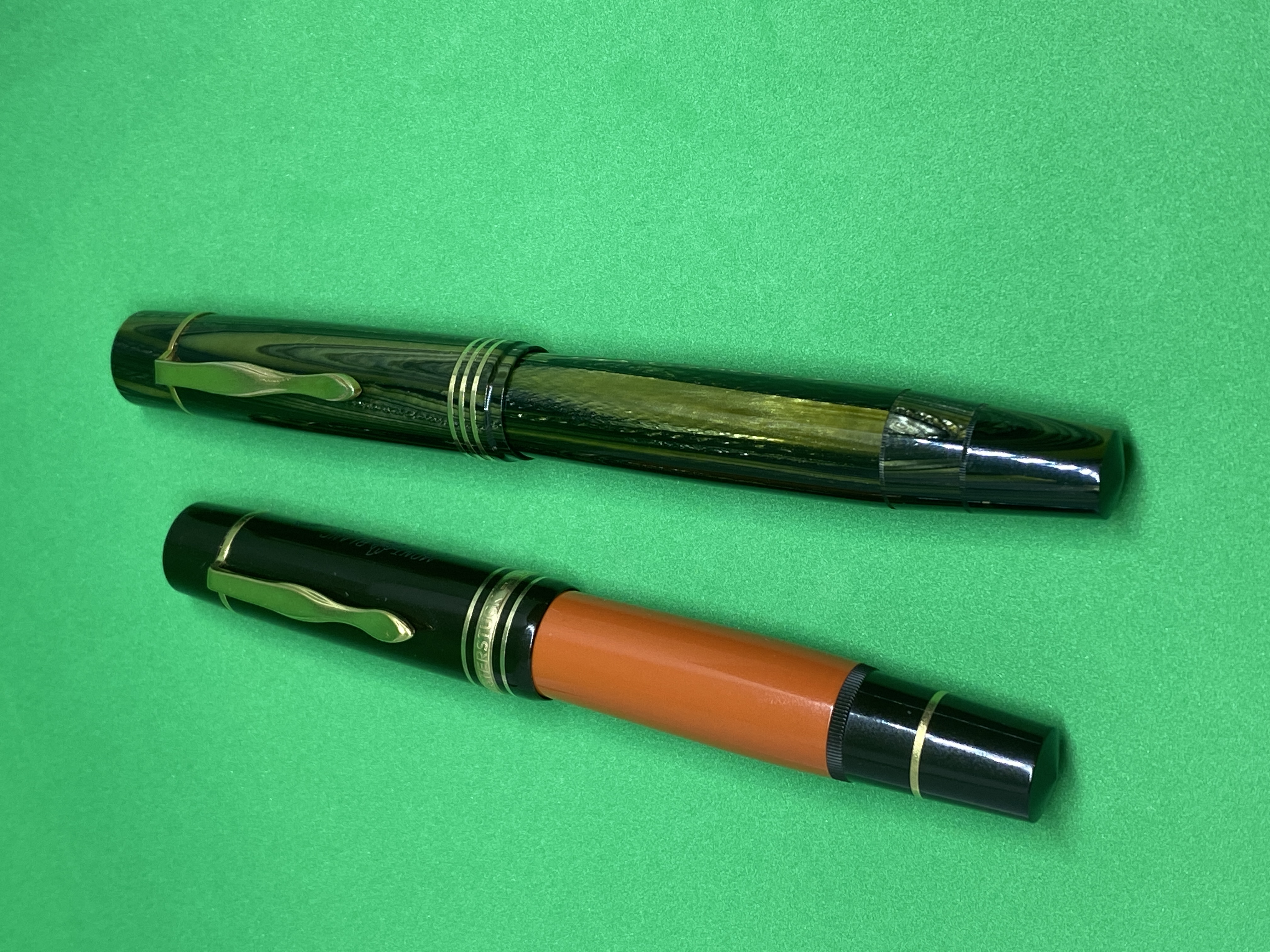 Goldfink CusTom pen oversize in celluloide verde. Pennino nr. 8, ricarica a pistone.