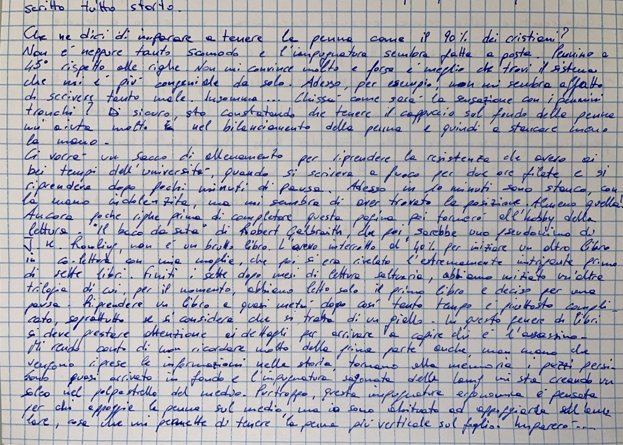 Questa è la scrittura “stabile” presa dopo qualche minuto di riscaldamento e tenuta sapendo di dover scrivere a lungo.
