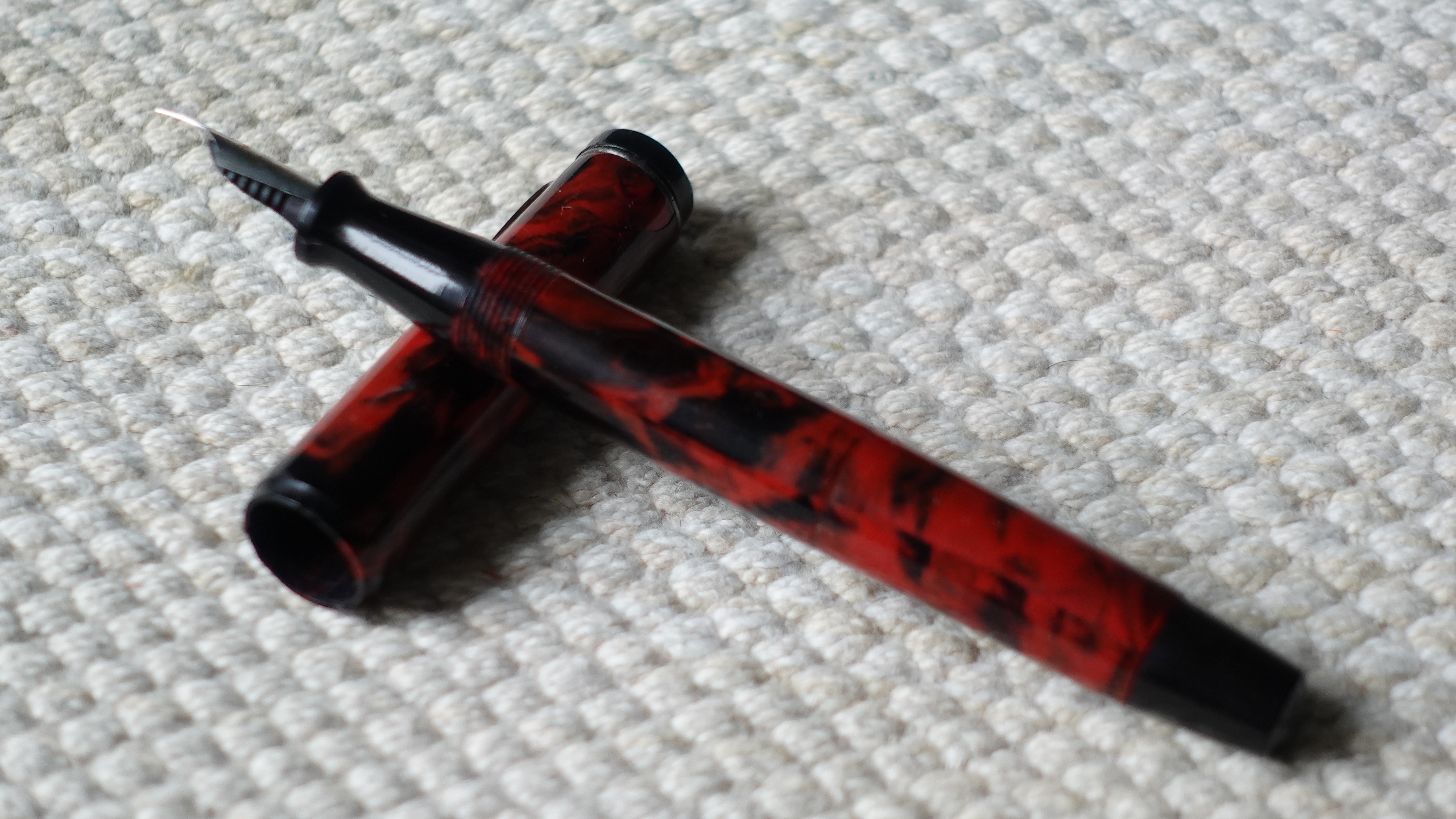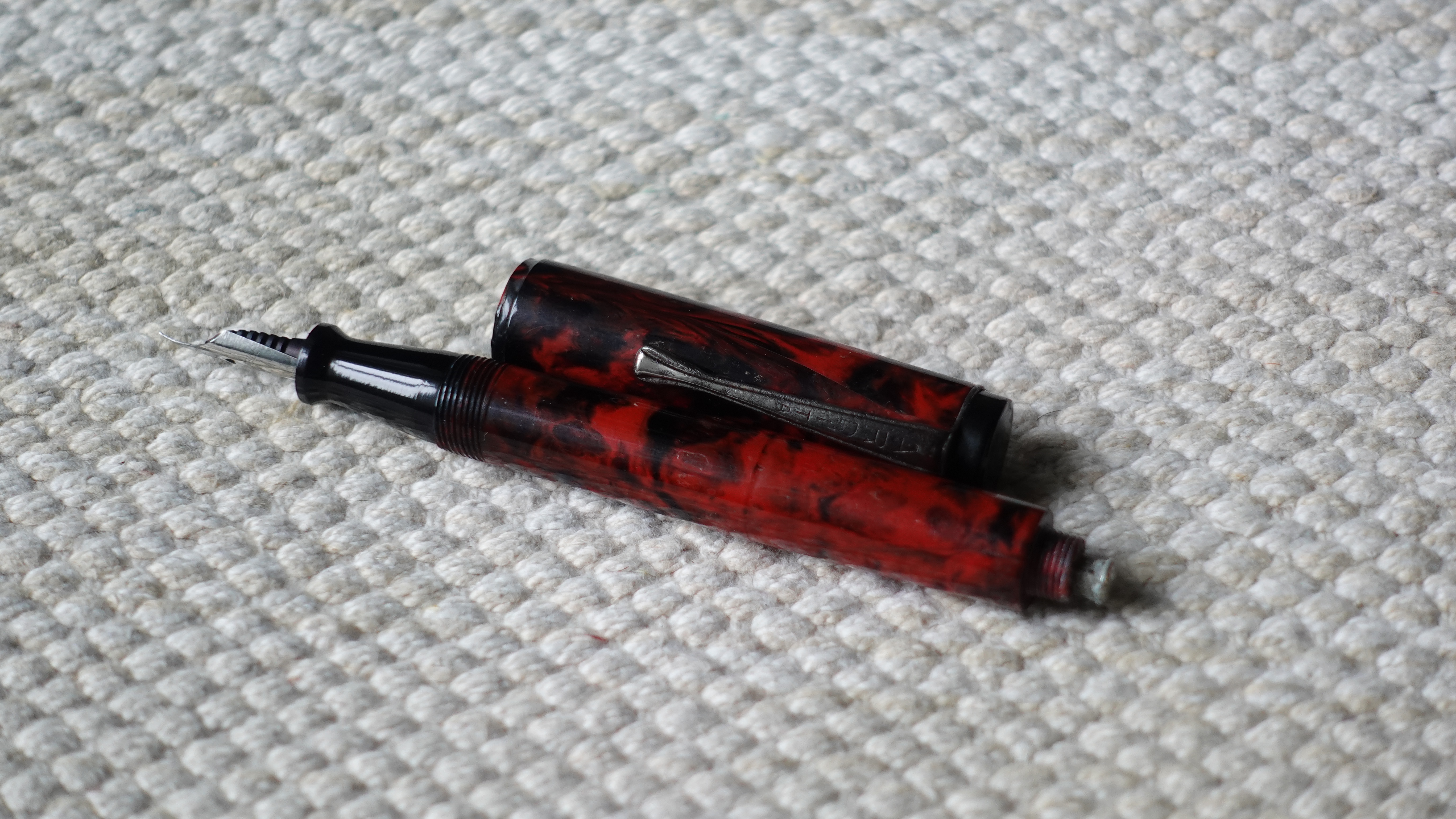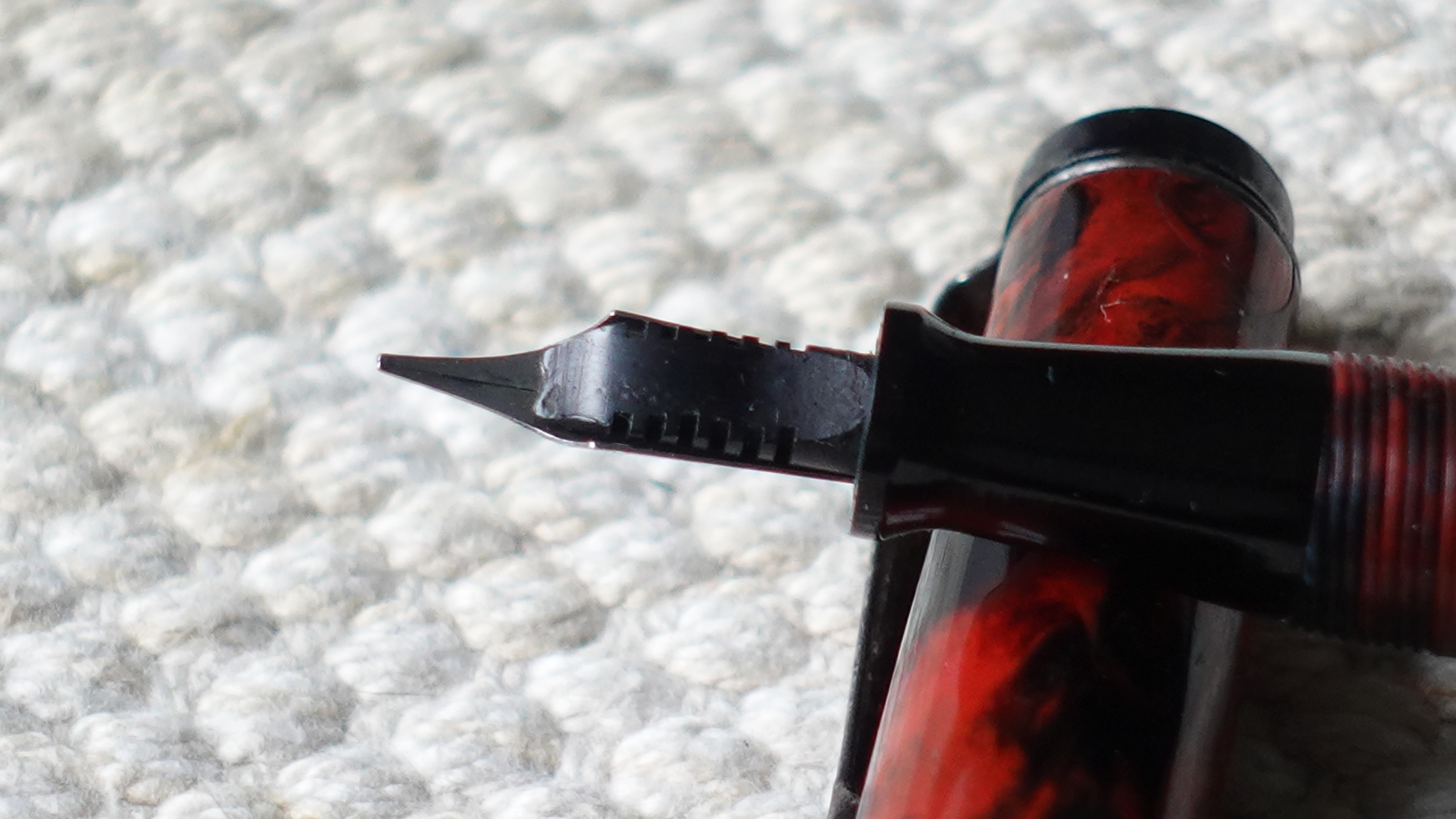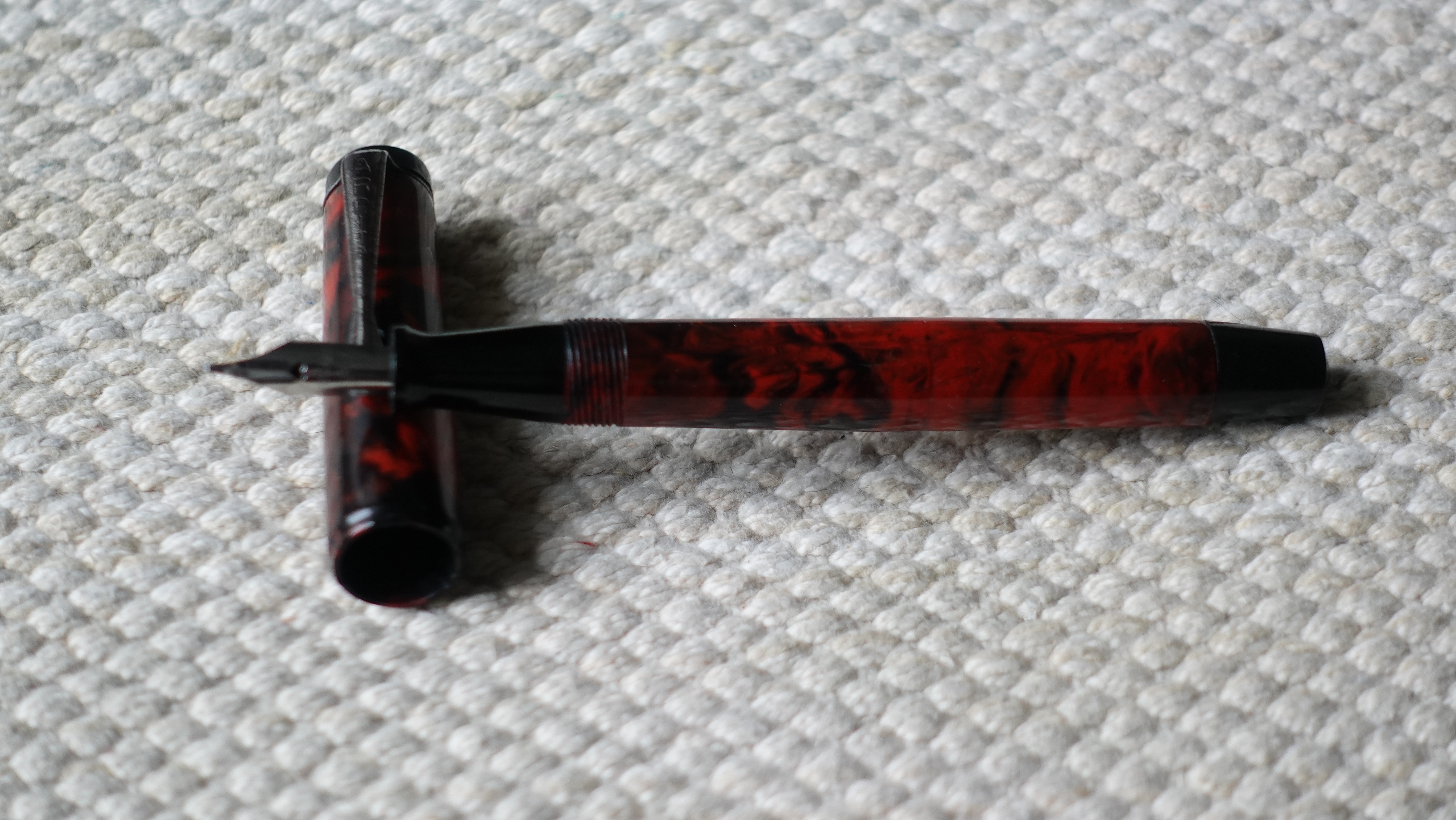 Ma ad occhio non sembra più plastica di altri, e la giunzione che si vede su una foto (non troppo bene, mi pare sia a fuoco il righello più che la penna) è normale nelle penne in celluloide fatte da una lastra sottile.