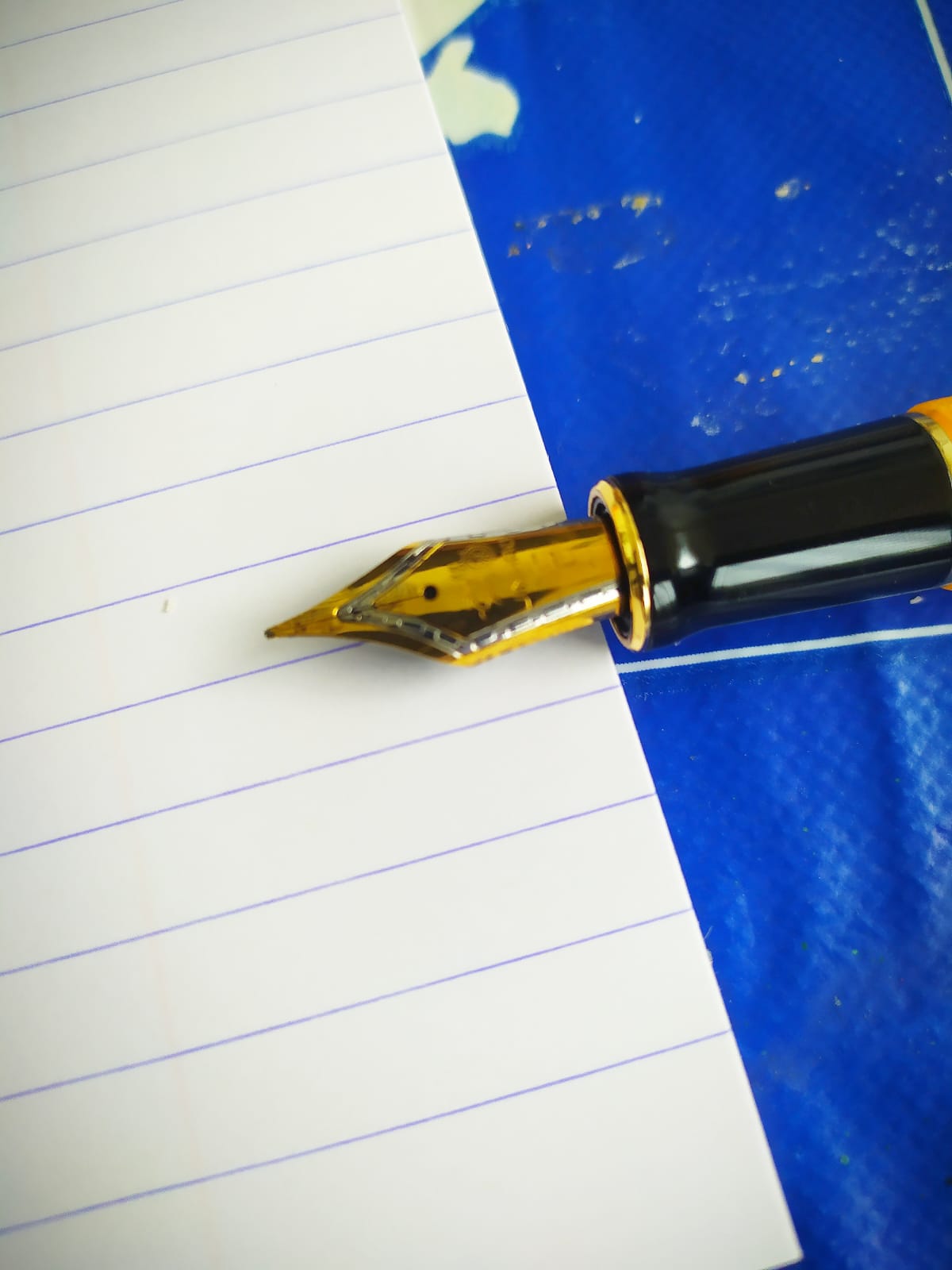 Il pennino F è un pennino bicolore standard, che scrive come un “M”. Il pennino, come per la maggior parte delle cinesi è un colpo di fortuna, perché il tratto non è deciso dall’iscrizione sovrimpressa ma da arcani misteri legati al destino, in genere possiede un tratto ampio e abbondante, a differenza dei pennini giapponesi, direi che la sua generosità talvolta fuori luogo, ma non sempre è così. Caratteristica assai interessante di questo pennino è la sua caratteristica di poter scrivere “reverse” con il pennino rigirato in alto, subendo una leggera variazione di tratto ma con lievissima sensazione di “grattugia”, per certi versi scrivendo in maniera assai più guidata.