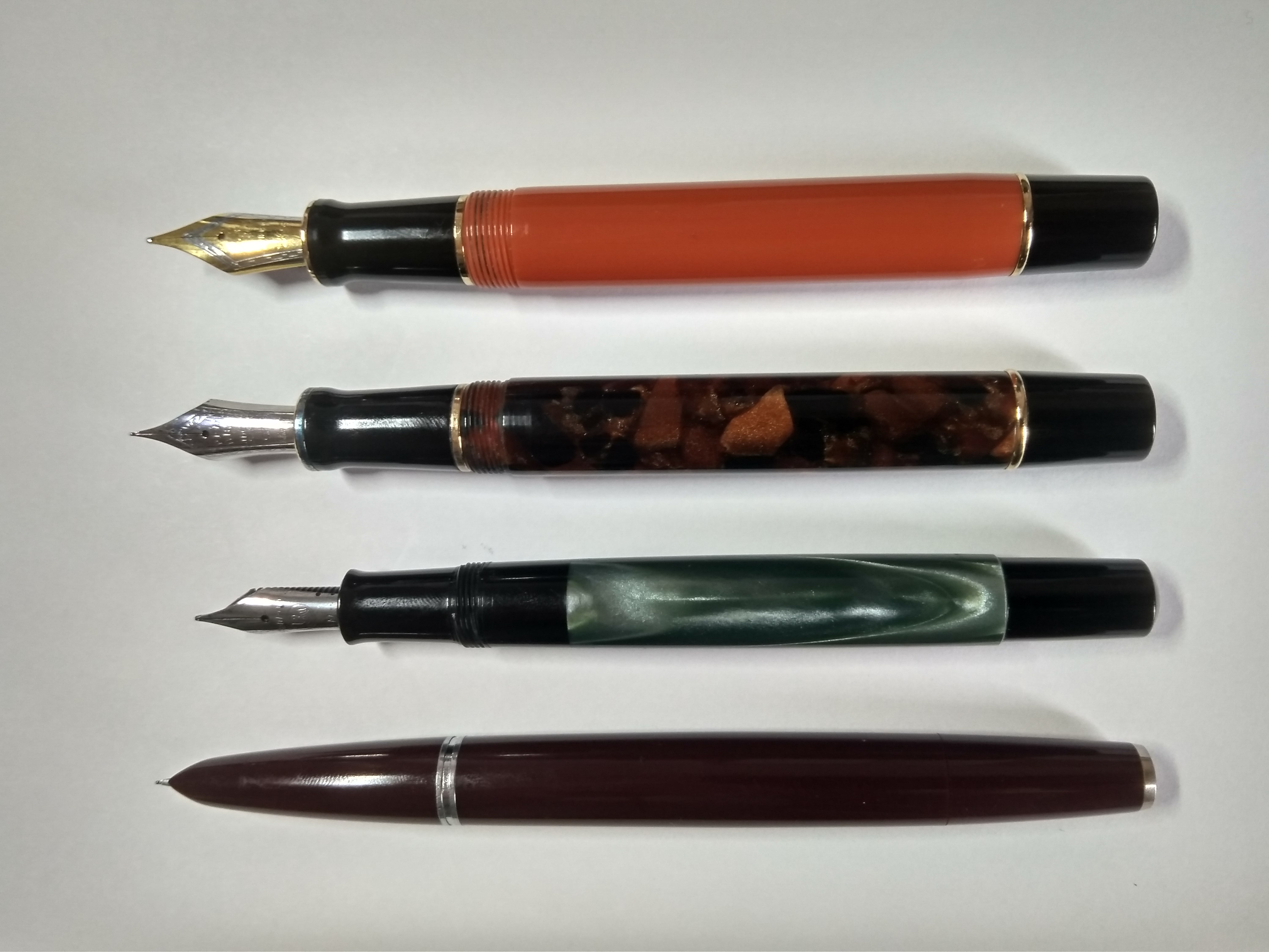 From top: Jinhao 100 Centennial, Moonman M600s, Pelikan M200, Wing Sung 601