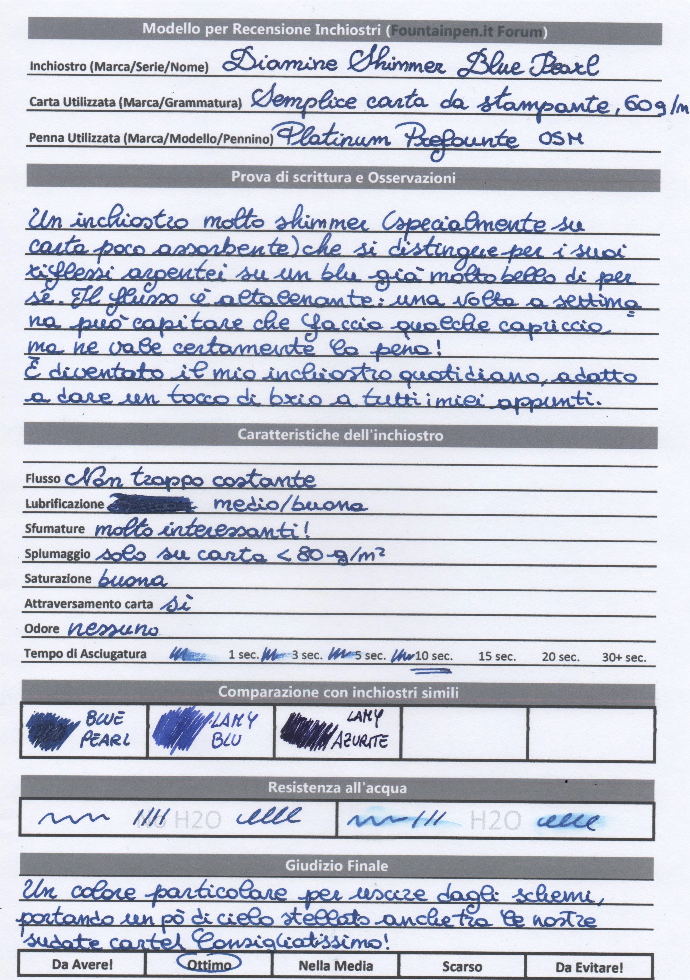 Dopo averlo utilizzato per un mesetto, vi porto la mia recensione dell'inchiostro shimmer Diamine "Blue Pearl". Premetto che è il mio primo inchiostro shimmer in assoluto, e che non mi aspettavo affatto una tale esplosione di brillantini!