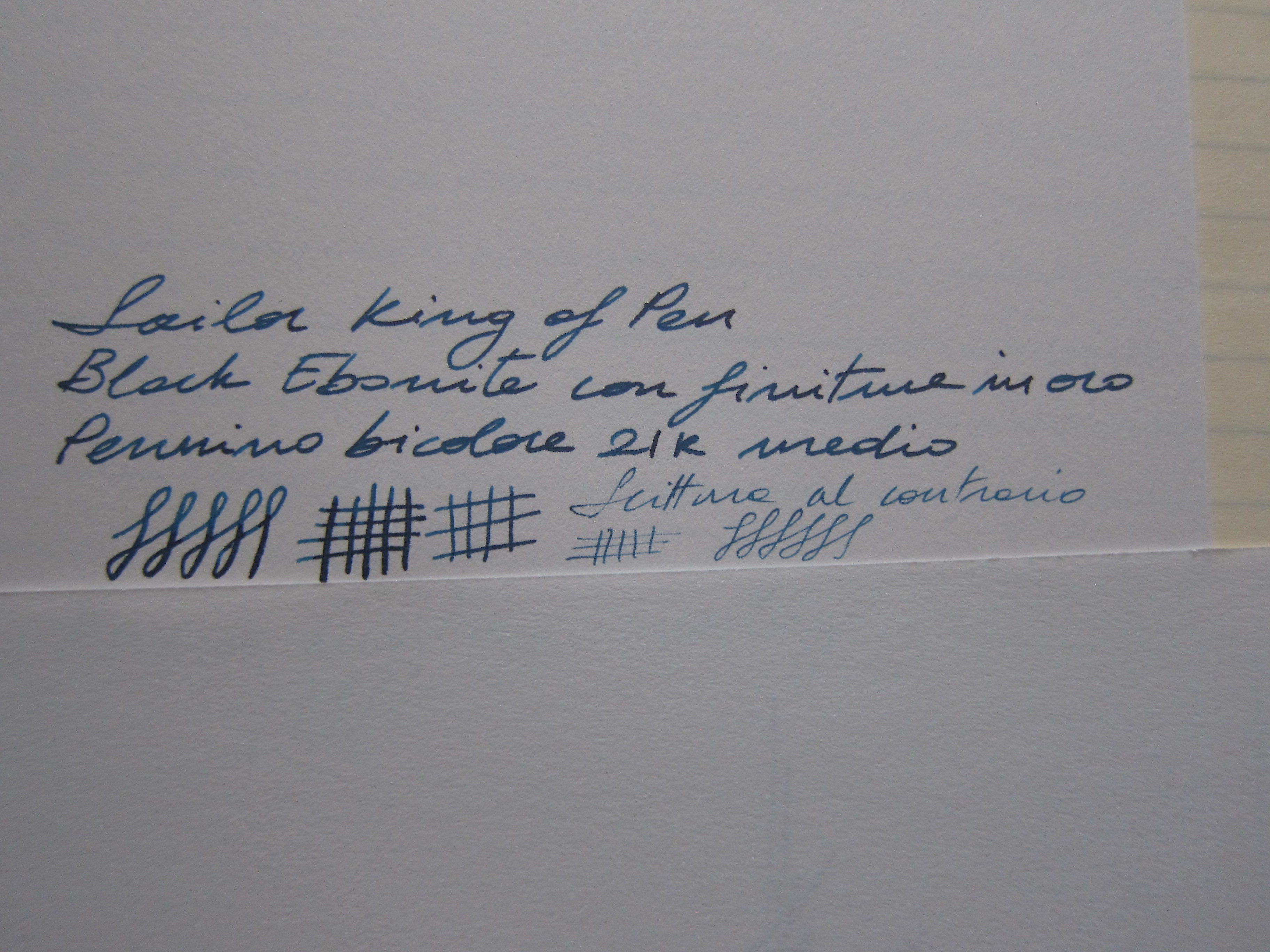 Si riesce ad ottenere un po di variazioni di linea e, giusto per informazione, scrive molto bene anche al contrario. Qui di seguito un breve esempio di scrittura (inchiostro Sailor Yama-Dori)