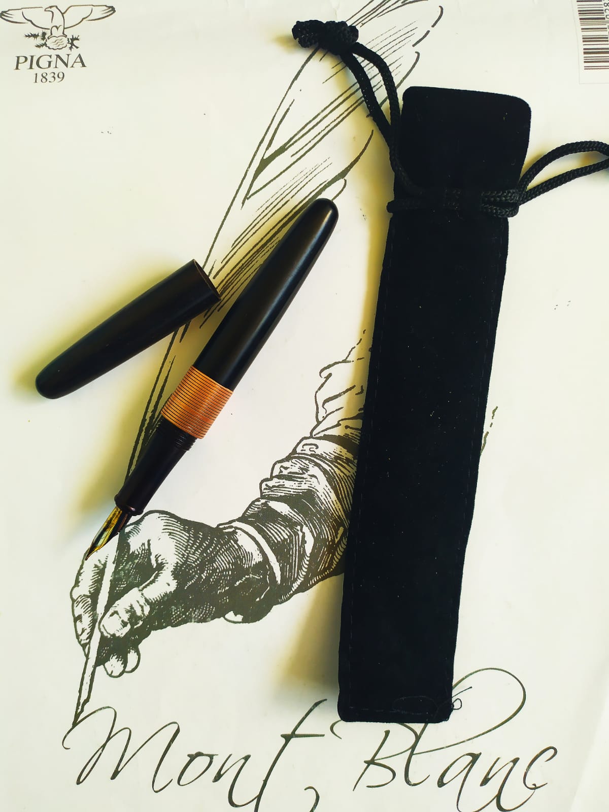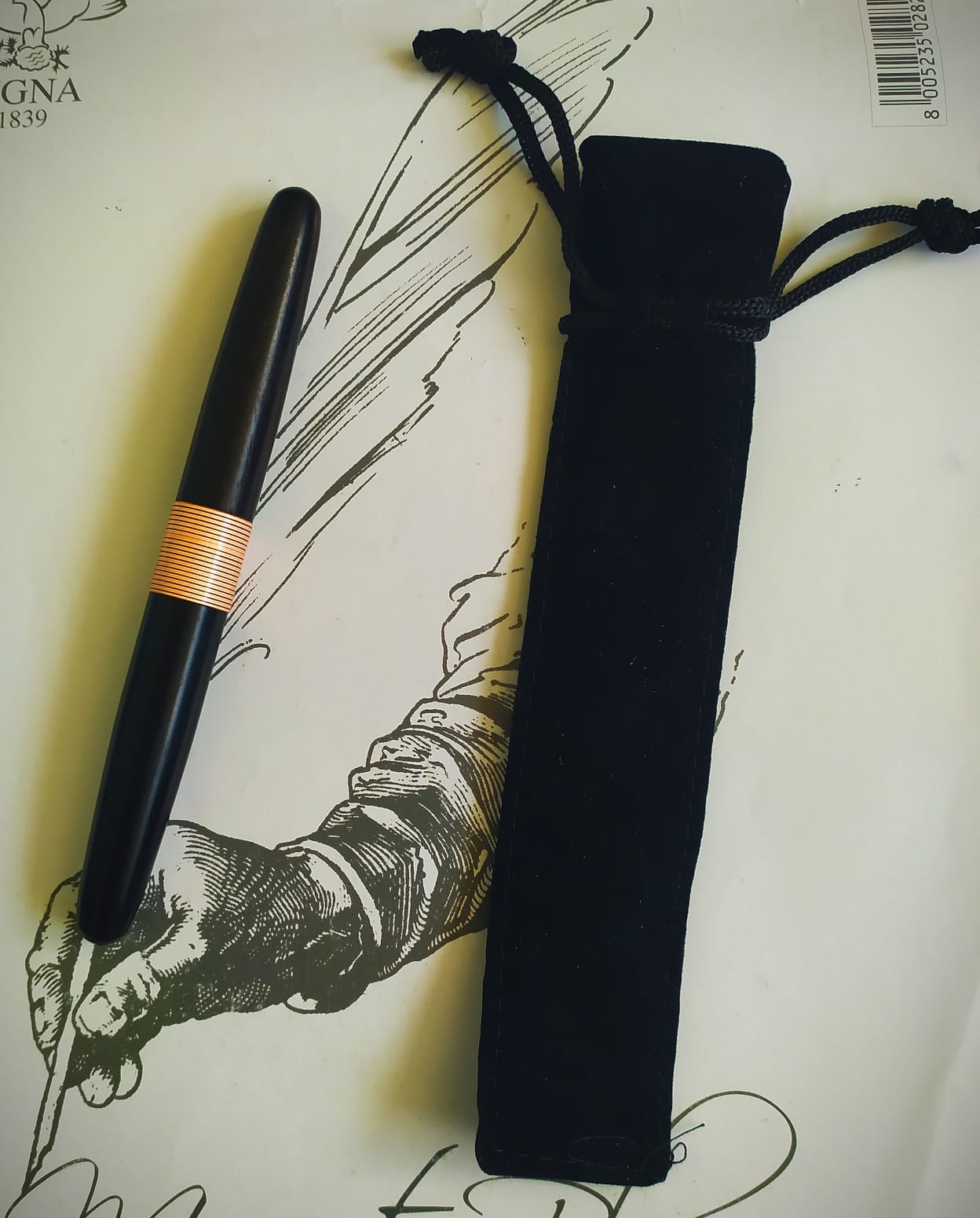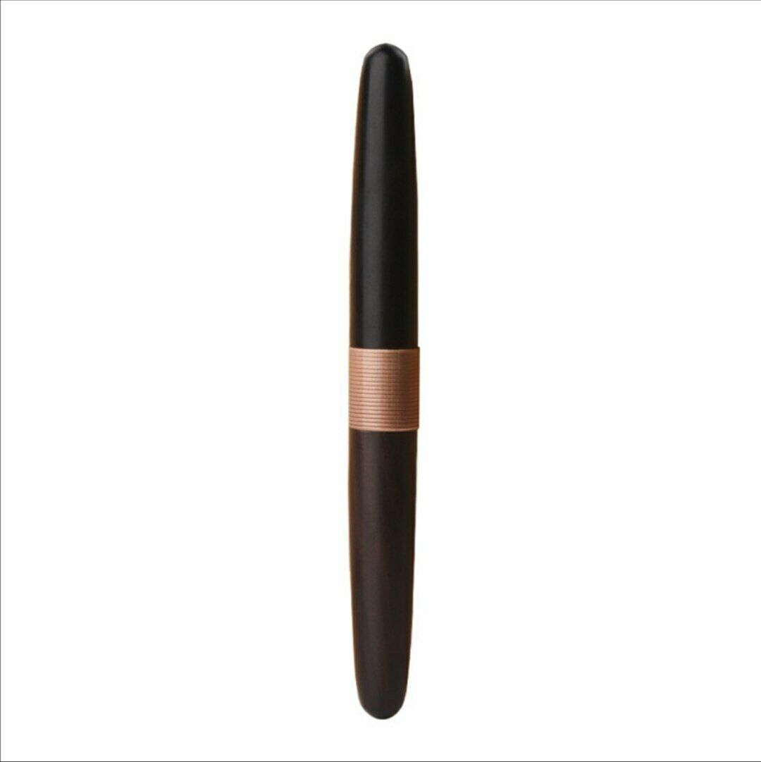 Le mie note di scrittura sono quelle di scrivere in punta di penna, diversa dal pattinare sull’inchiostro della Jinhao, però, possiede un tratto sicuramente più sicuro e deciso. Possiede una scrittura decente, eppure mi rimane l’amarezza che l’occidente non sempre sia riuscito a fare di meglio in fatto di essenza minimalista. Guardiamo la Namisu (GB) Horizon, anche lei priva di clip e presentata nella forma a sigaro in ebanite, con pennini Bock, oppure in alluminio.