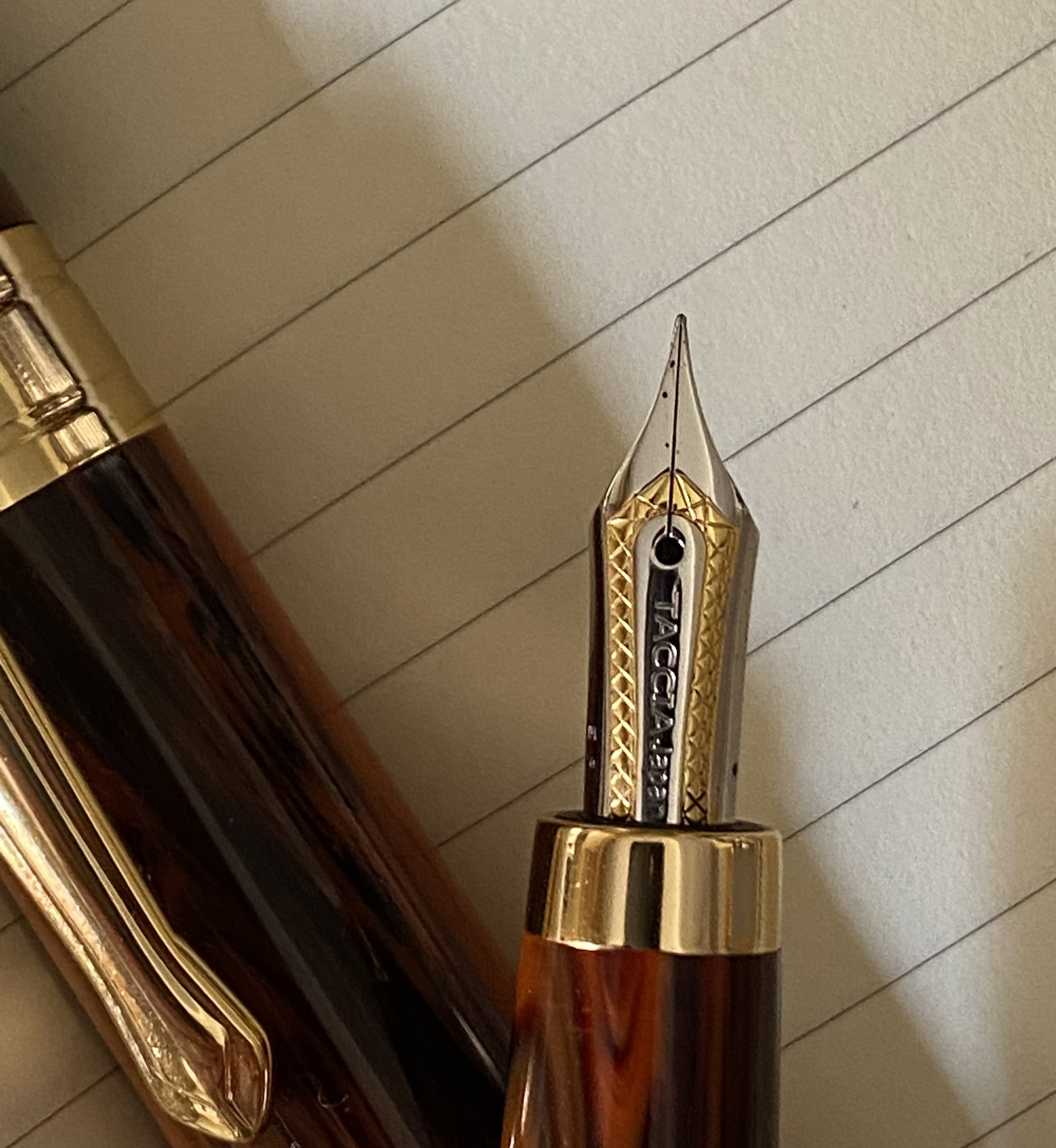 La Twsbi nera ha un pennino 1,10 bello e scorrevole, la grigia un M altrettanto bello infine la 120 con pennino F, una goduria. Ho già la 120 verde (riedizione) e per questa non intendevo spendere la cifra richiesta (esageratamente speculativa), ho atteso sulla riva del fiume e l'occasione è arrivata, non ho mai fretta in fatto di penne.