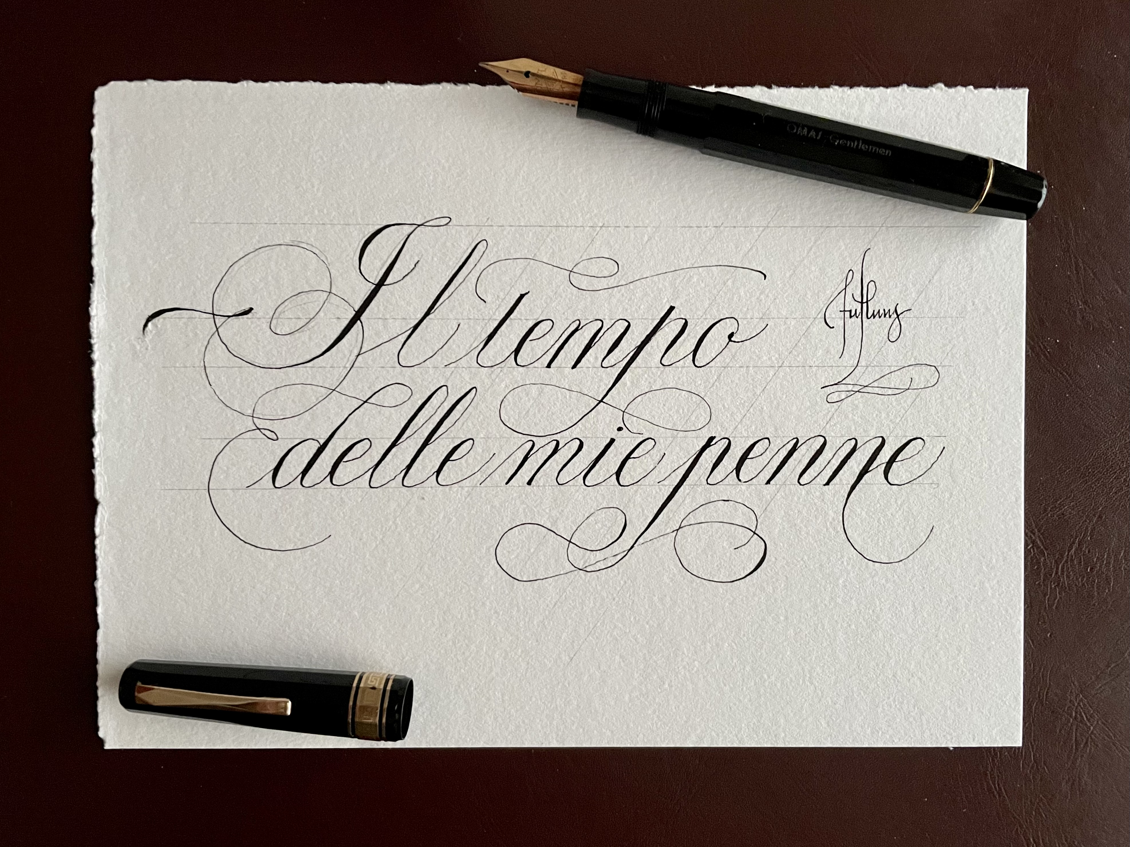 delle mie penne. Le apro e le gingillo e le richiudo e ne pulisco ogni tanto l’una o l’altra, lavo, asciugo, ricarico, provo un nuovo inchiostro, le rimiro e mi compiaccio. Scarabocchio qualcosa sui miei tanti quaderni, per lo più frasi prive di senso compiuto, ogni tanto una lettera per la moglie o le figlie, più raramente ancora un “pensierino” meglio organizzato. Quando la mano ha voglia di correre, acchiappo un foglio di quelli buoni e “ripasso” il pensiero. Prima, gingillo nuovamente tra le mani qualche penna per scegliere la “eletta” per il lavoro. Le guardo e ne sono felice. Allora calligrafo un po’...