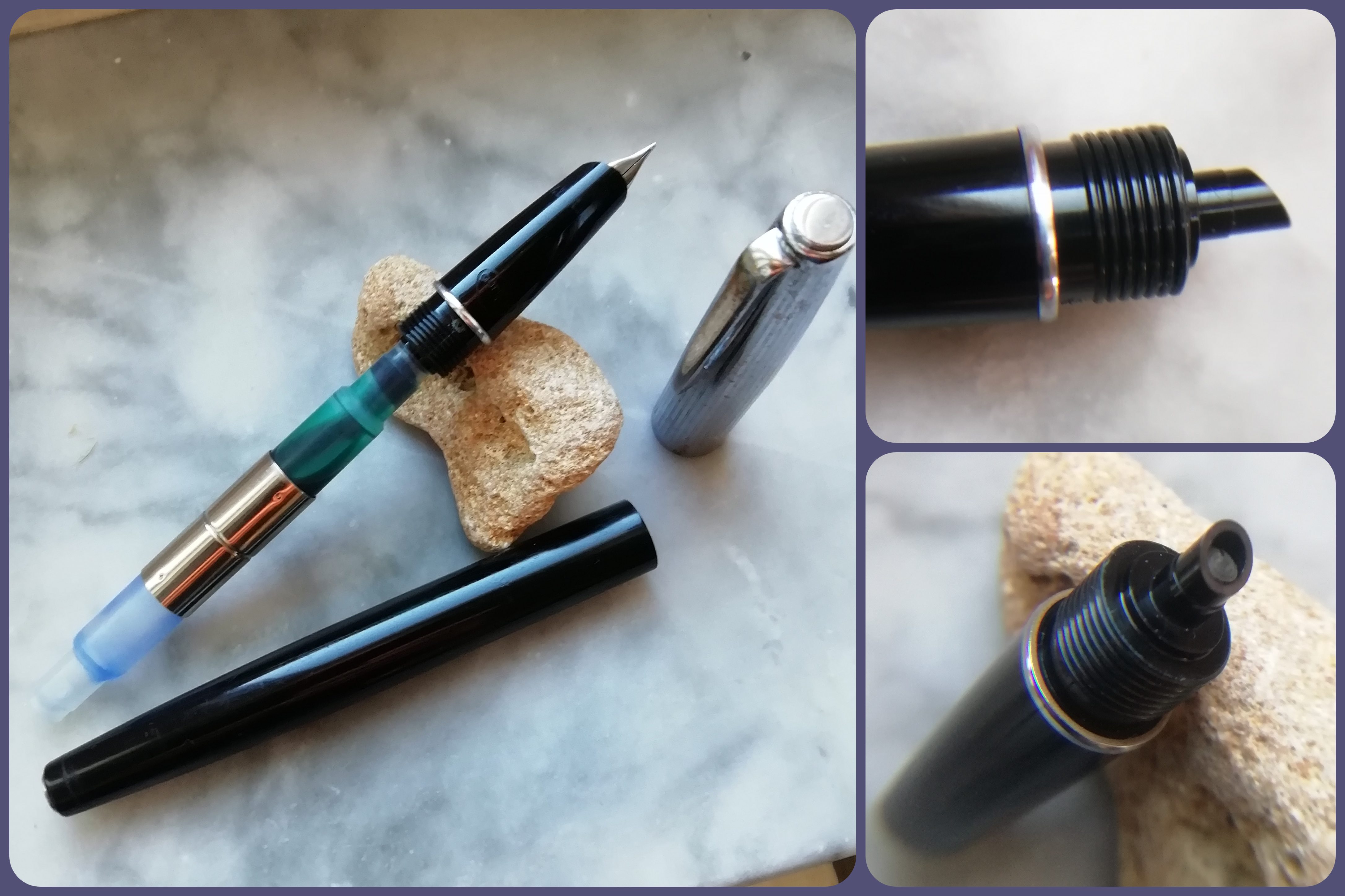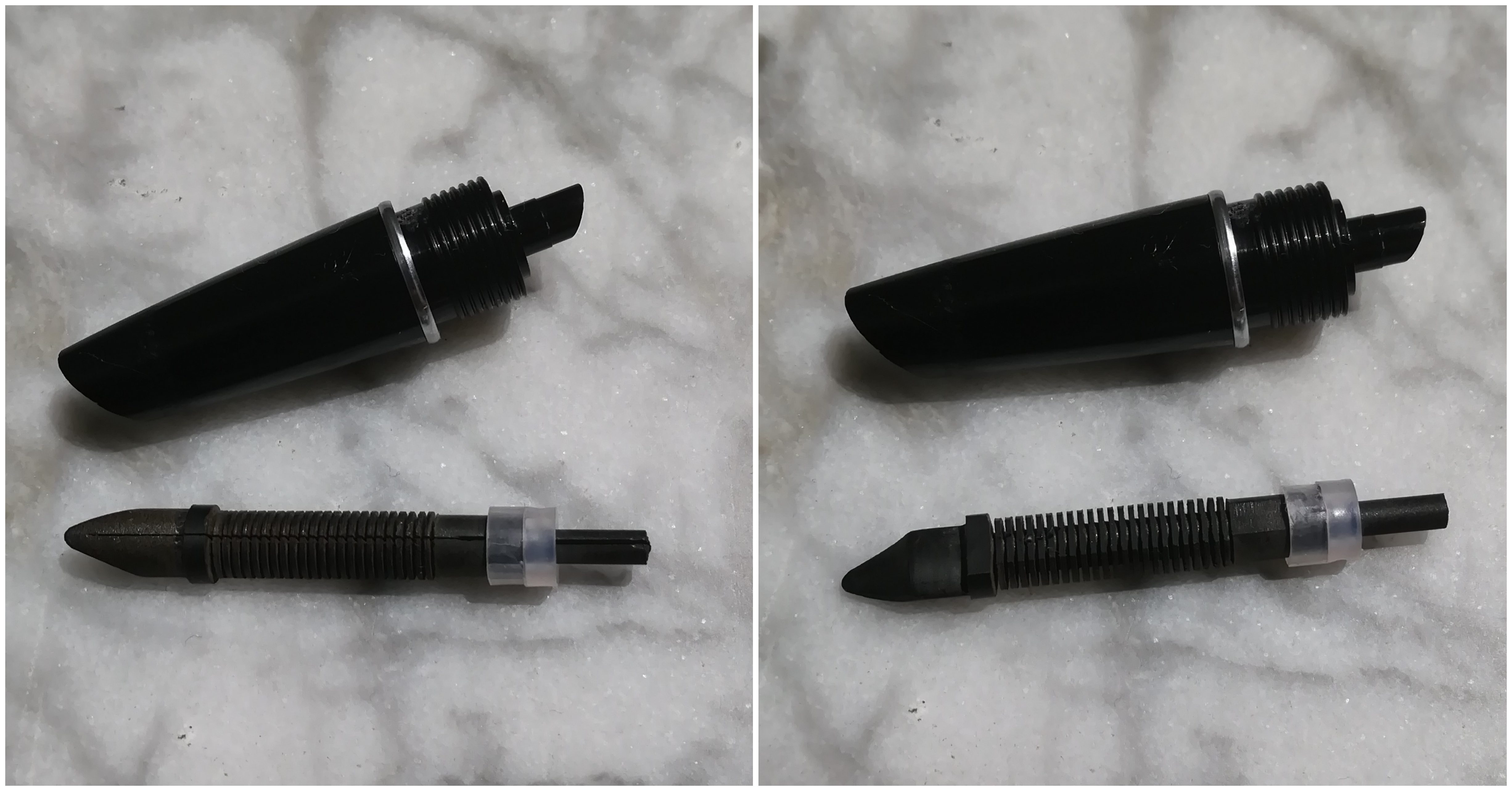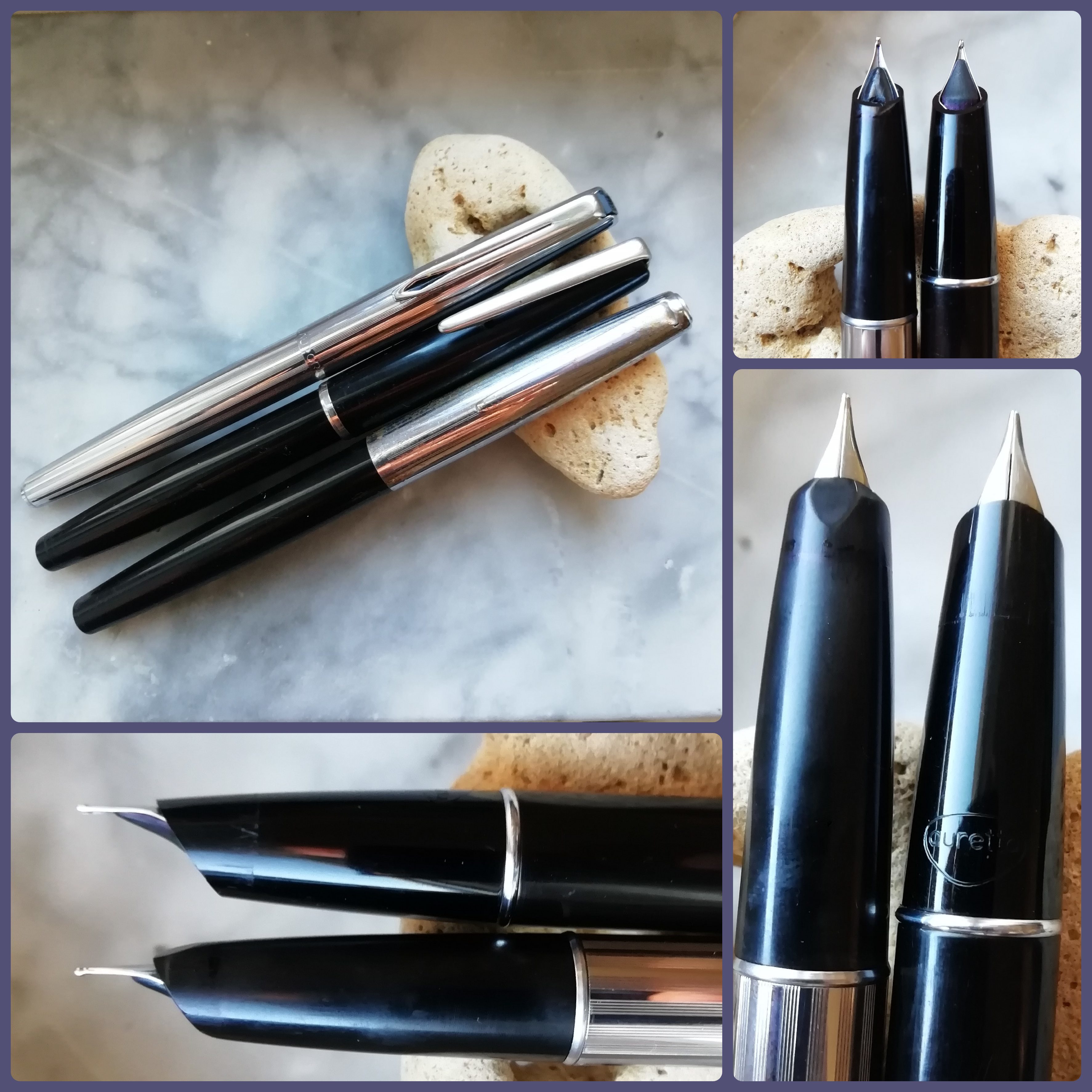 Quello a tratto fine calza a pennello. Quello a tratto medio invece fatica a essere inserito e non ho forzato. Provando a invertire i due pennini sulle due Auretta ho visto che di nuovo quello medio sforzava un po’ ma si inseriva. Non ho un calibro di precisione, ma la sensazione è che il pennino medio abbia uno spessore della lamina metallica leggermente superiore di quello fine.