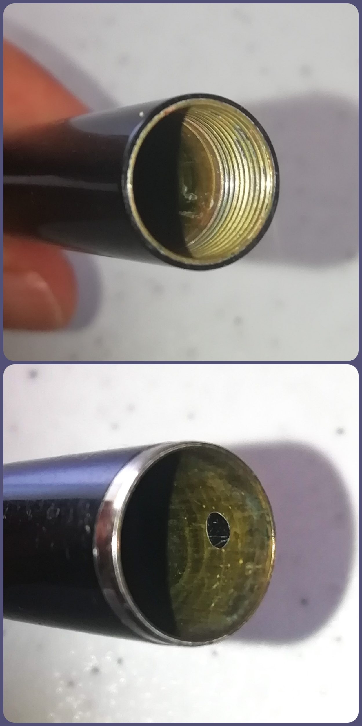 Prima di tutto da chiuse. Purtroppo il cappuccio metallico è messo molto male, avendo perso buona parte della cromatura.