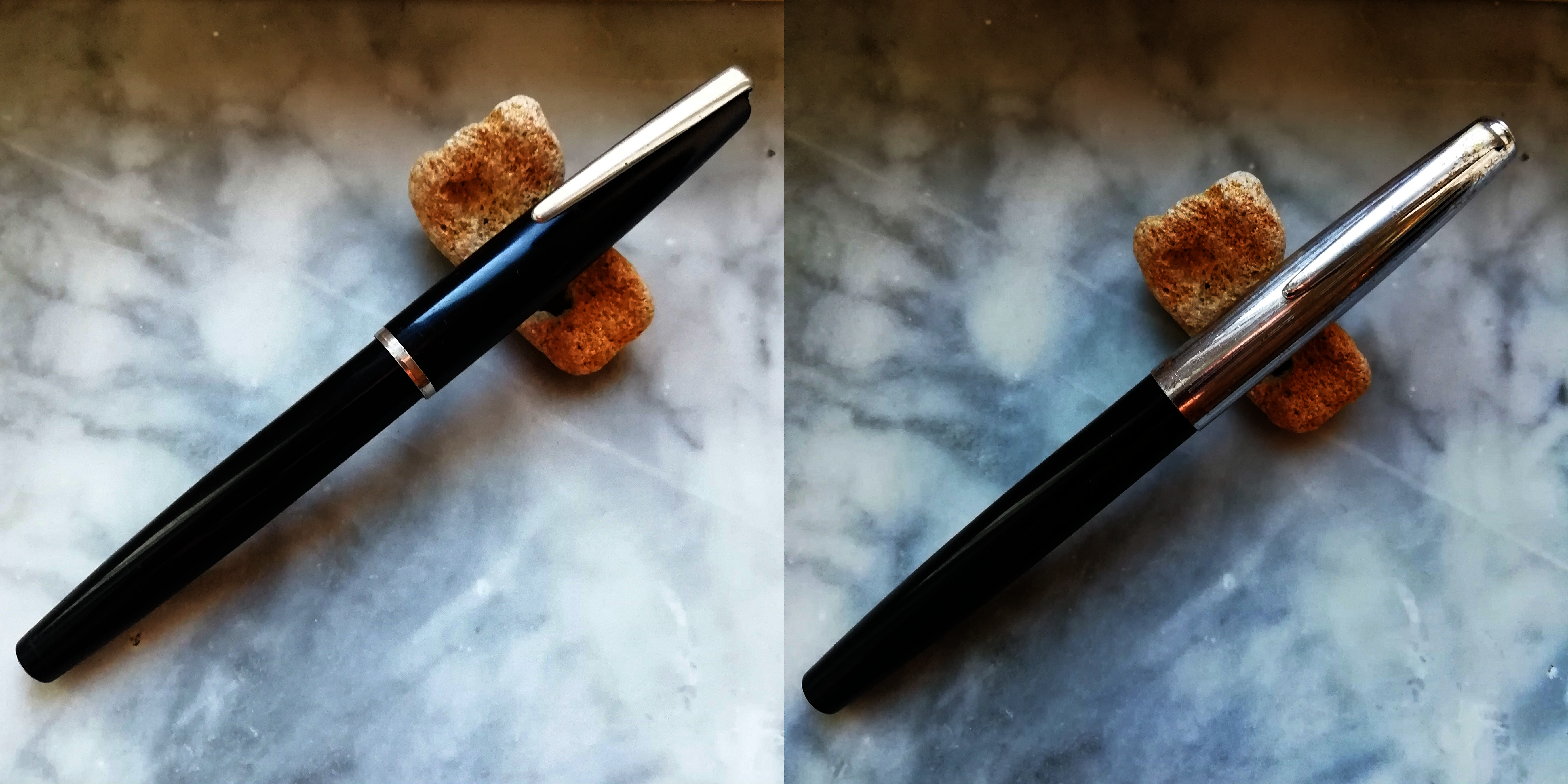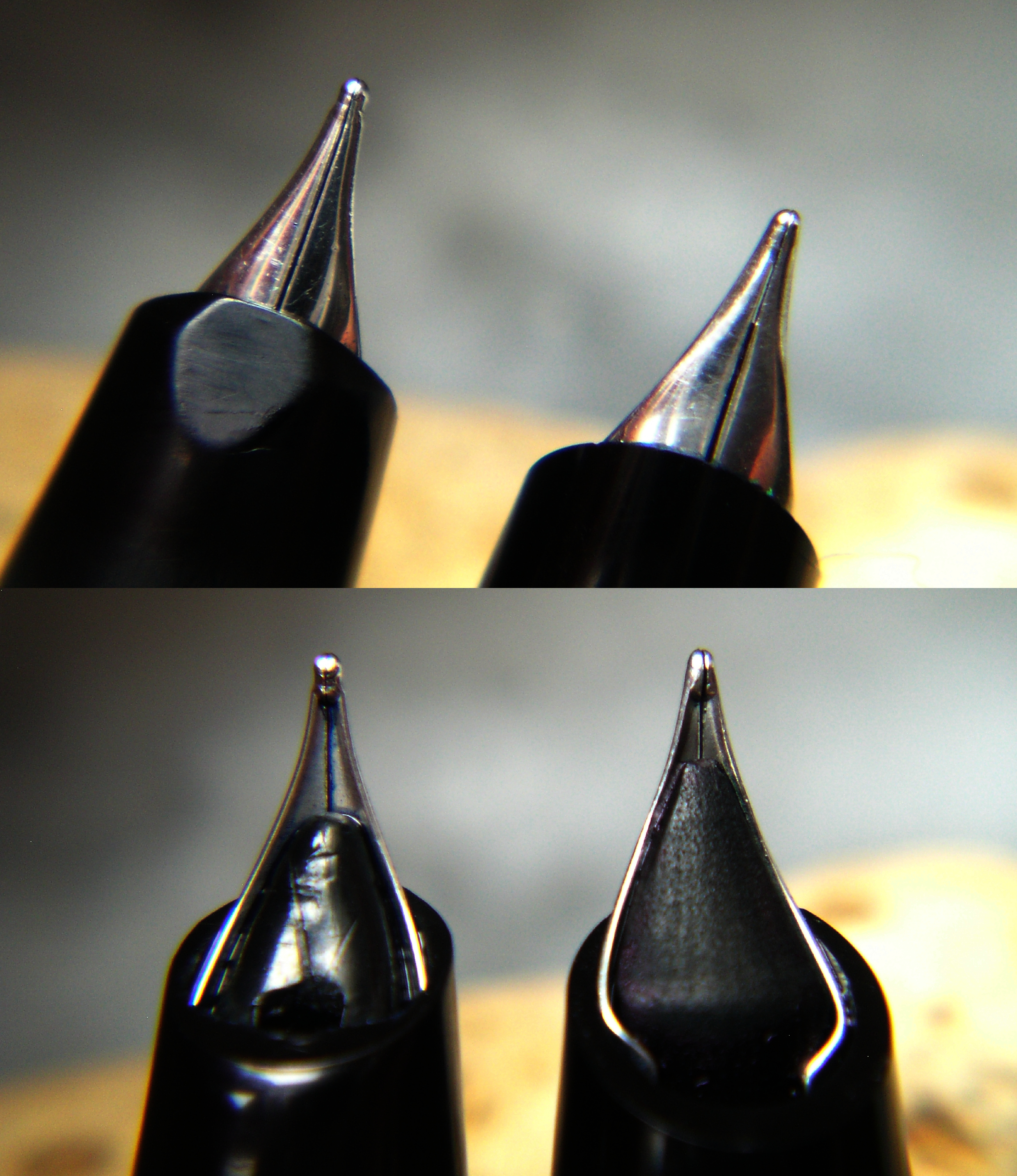 I due pennini non hanno marchiature differenti, ma all’atto pratico uno ha tratto fine mentre l’altro è medio. Dalle foto non si nota, ma dal vivo si percepisce una differenza di fattura e di colore.