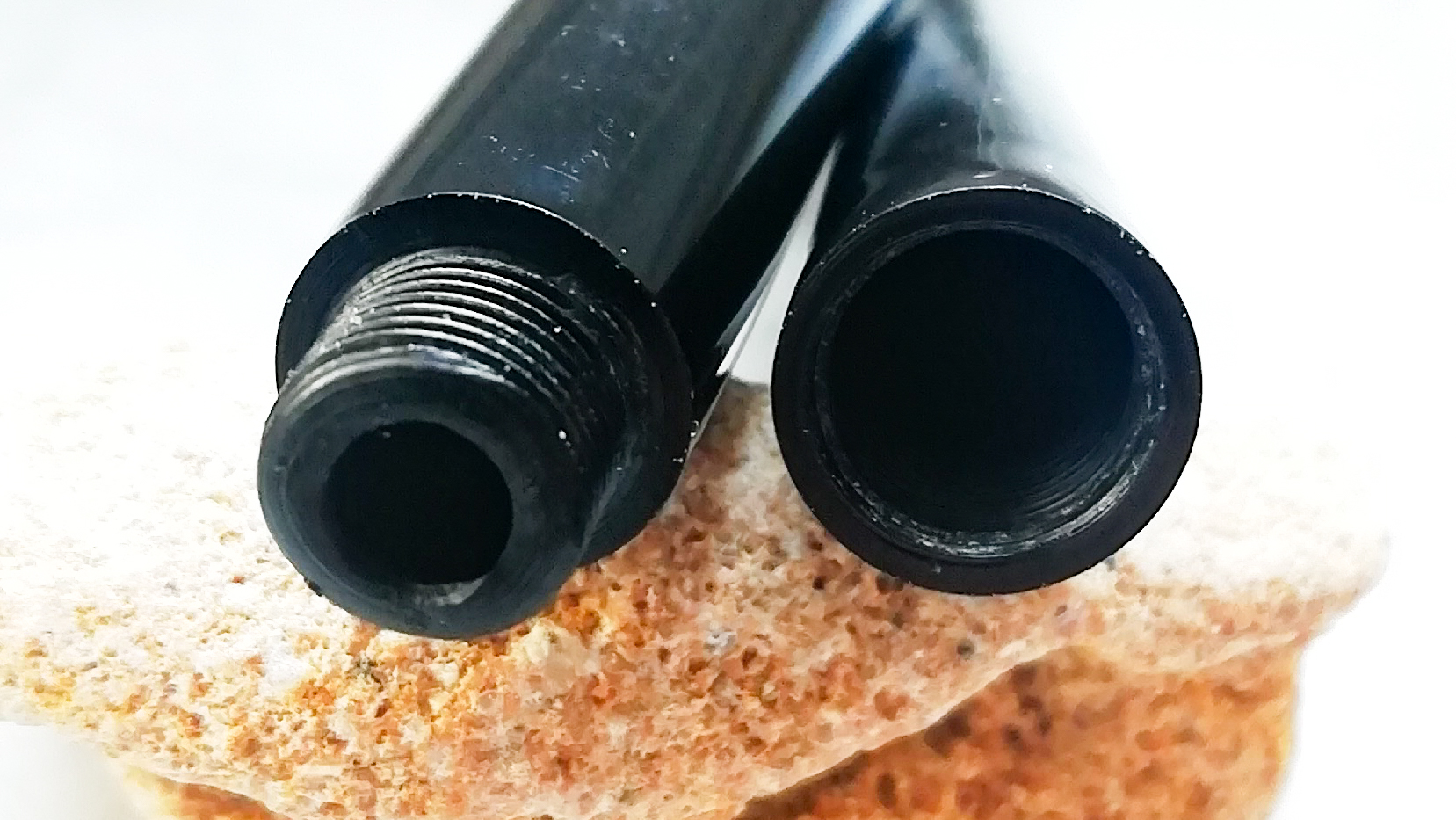 Il fusto è costituito da due pezzi saldati: il primo tratto è quello della filettatura interna, ha una sfumatura più bluastra e osservandolo con la lente sembra lavorato al tornio. Il secondo tratto è più liscio, non ha segni di tornio ma presenta molte microcavillature.