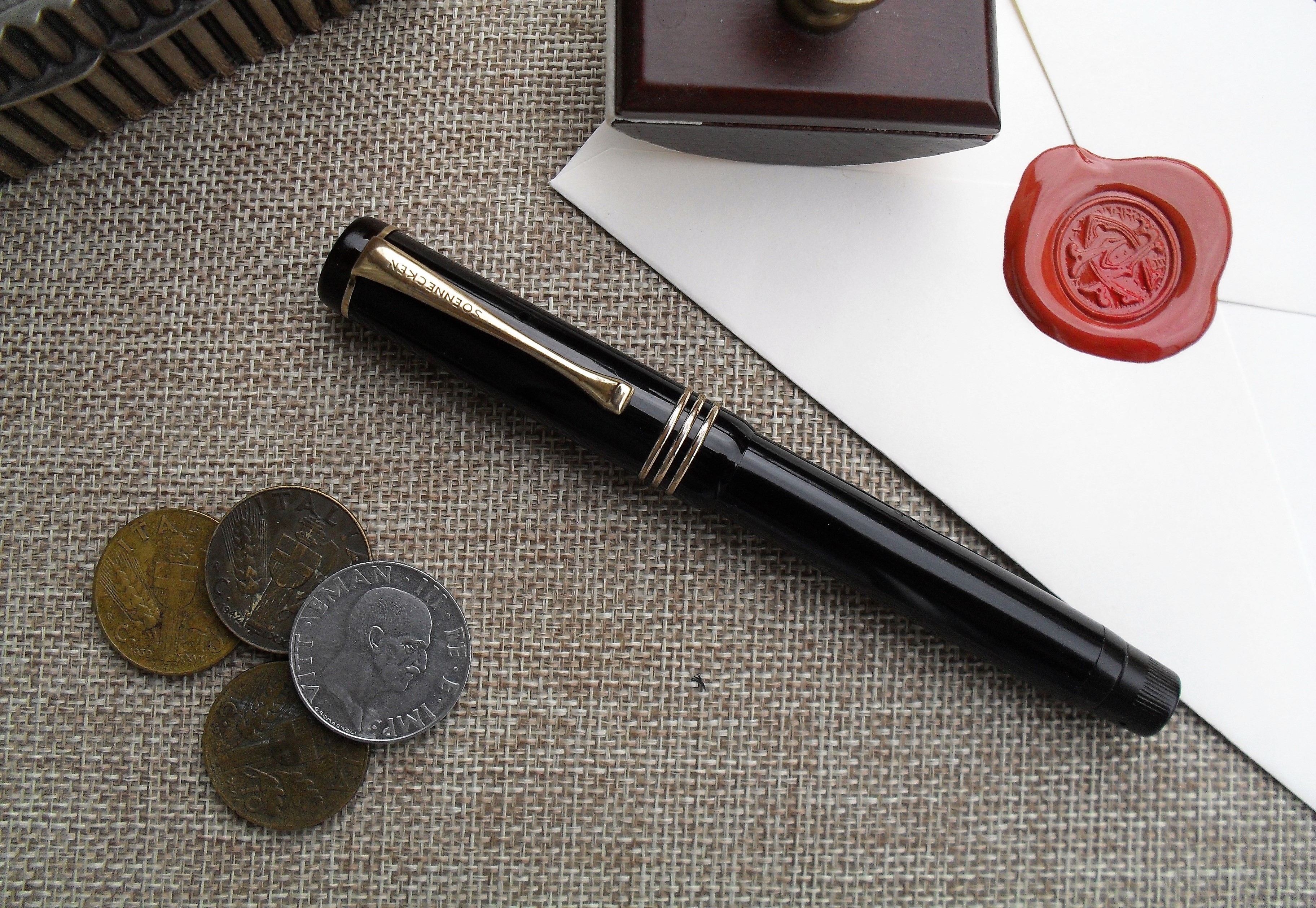 Prendendo in mano la penna, si nota subito che qualcosa la contraddistingue e la fa emergere nettamente dalla produzione media del periodo: il peso e la sensazione di solidità sono davvero peculiari e suggeriscono una qualità produttiva non comune, del resto confermata sia dallo smontaggio della stilografica, sia, esternamente, dalla qualità delle tre verette che adornano il cappuccio. Per non ripetermi sugli altri dettagli, vi rimando al link relativo alla riparazione, aggiungendo però che non mi stupisce affatto sapere che per molti Soennecken rimane il miglior produttore di stilografiche tedesco almeno fino alla seconda guerra mondiale.