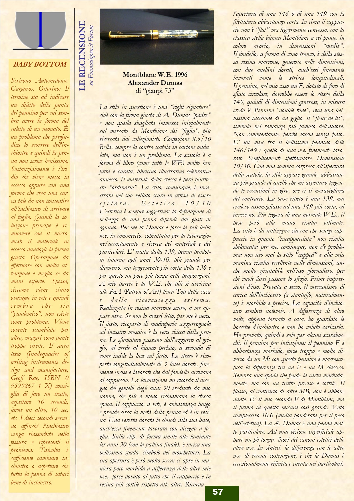 Grazie per gli incoraggiamenti, che aiutano a farsi un'idea se continuare o lasciar perdere, sicuramente questo tipo di lavori aiutano comunque a farsi un'idea del mondo della stilografica, impaginando e scrivendo i sono accorto di quanto è variegato e avariato (solo qualche volta) la storia degli strumenti di scrittura... Rimane l'ottimo lavoro di Paolo Tribolati, con il quale già siamo in procinto di ulteriori avventure, AURORA e OMAS permettendo...