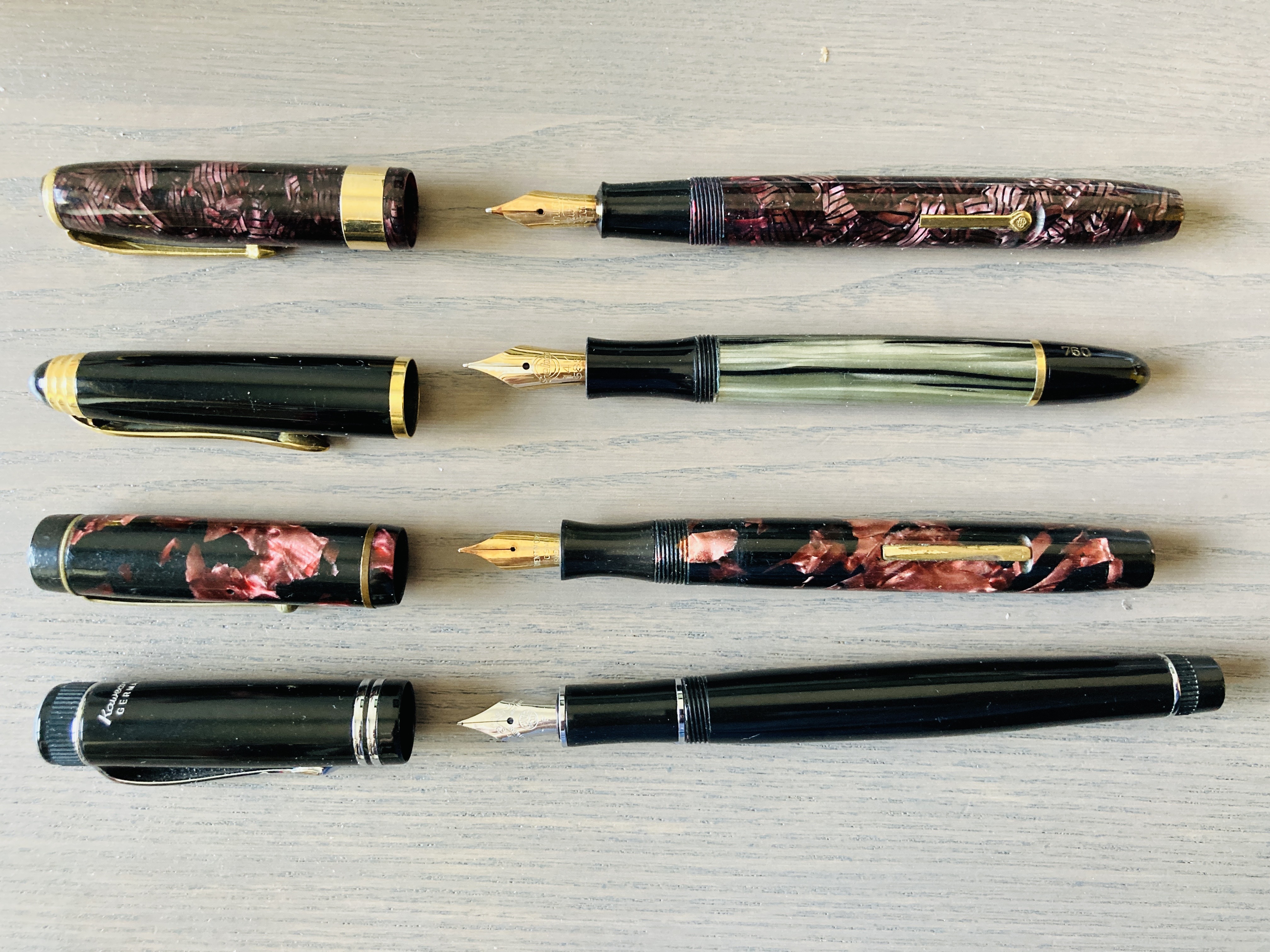 La mia personale esperienza con quel genere di gruppo scrittura è globalmente molto buona e, tranne un unico esemplare (su... boh, una decina?) problematico, un EF impossibile da sistemare (che mi fu sostituito senza problemi), ho sempre incrociato pennini molto buoni e corretti nella misura (un EF è un extrafine vero). Poi mi era capitato un F davvero troppo abbondante, che scriveva come un B, ma è stato moltissimo tempo fa, credo che a un certo punto abbiano corretto il problema.