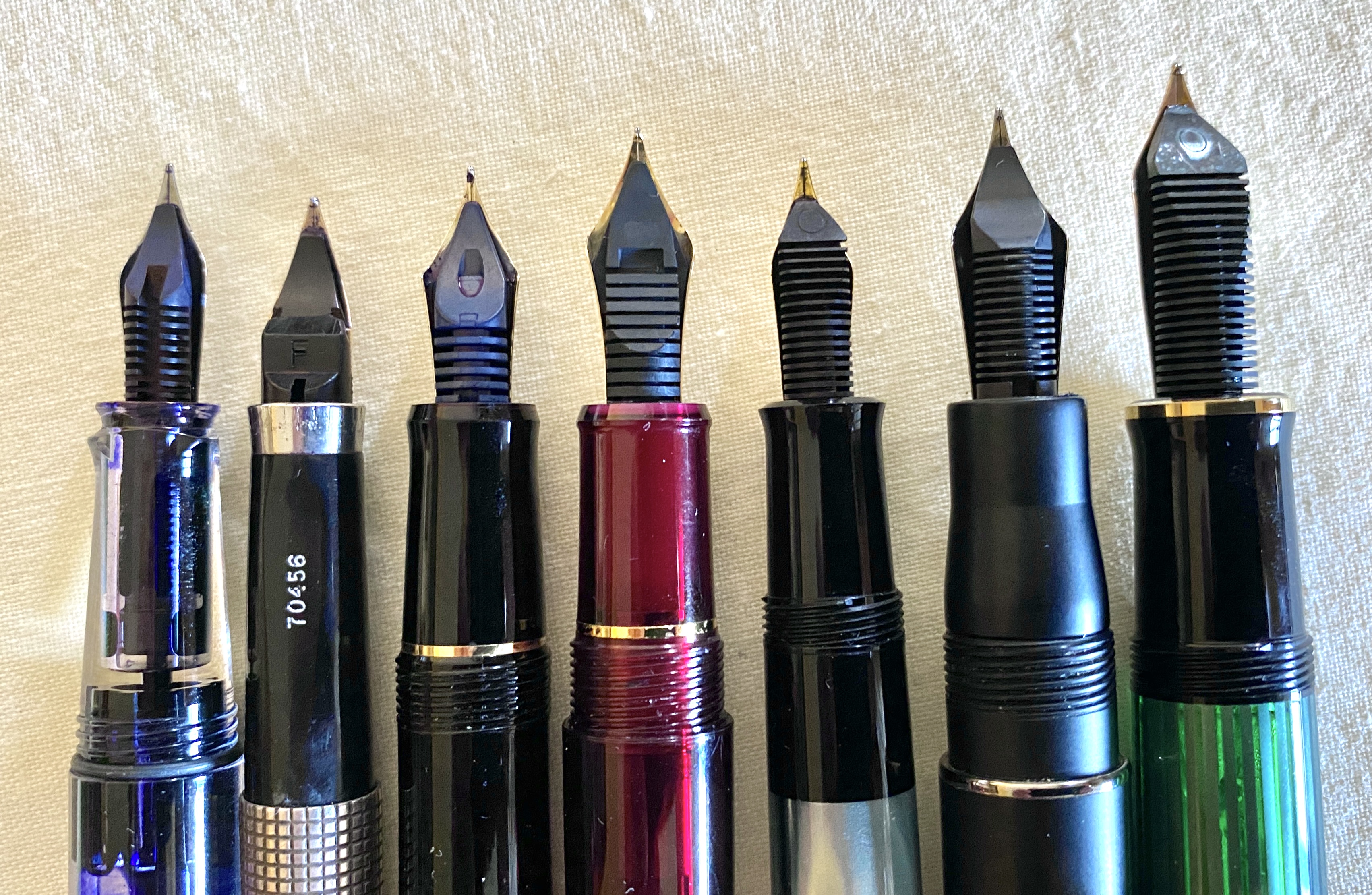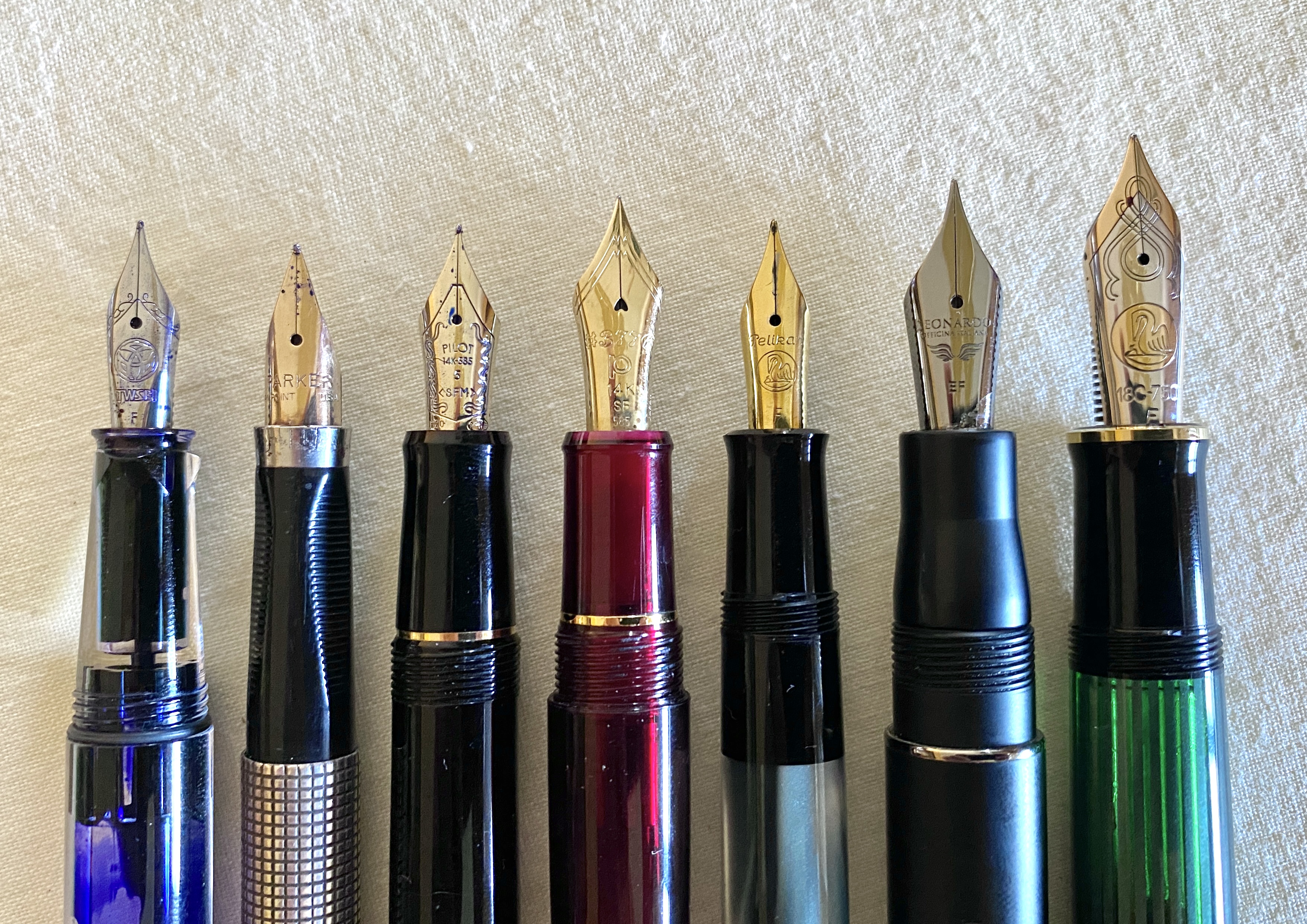 TWSBI eco; Parker 75; Pilot Custom 74; Platinum 3776; Pelikan M200; Leonardo Momento Zero e Pelikan M1000