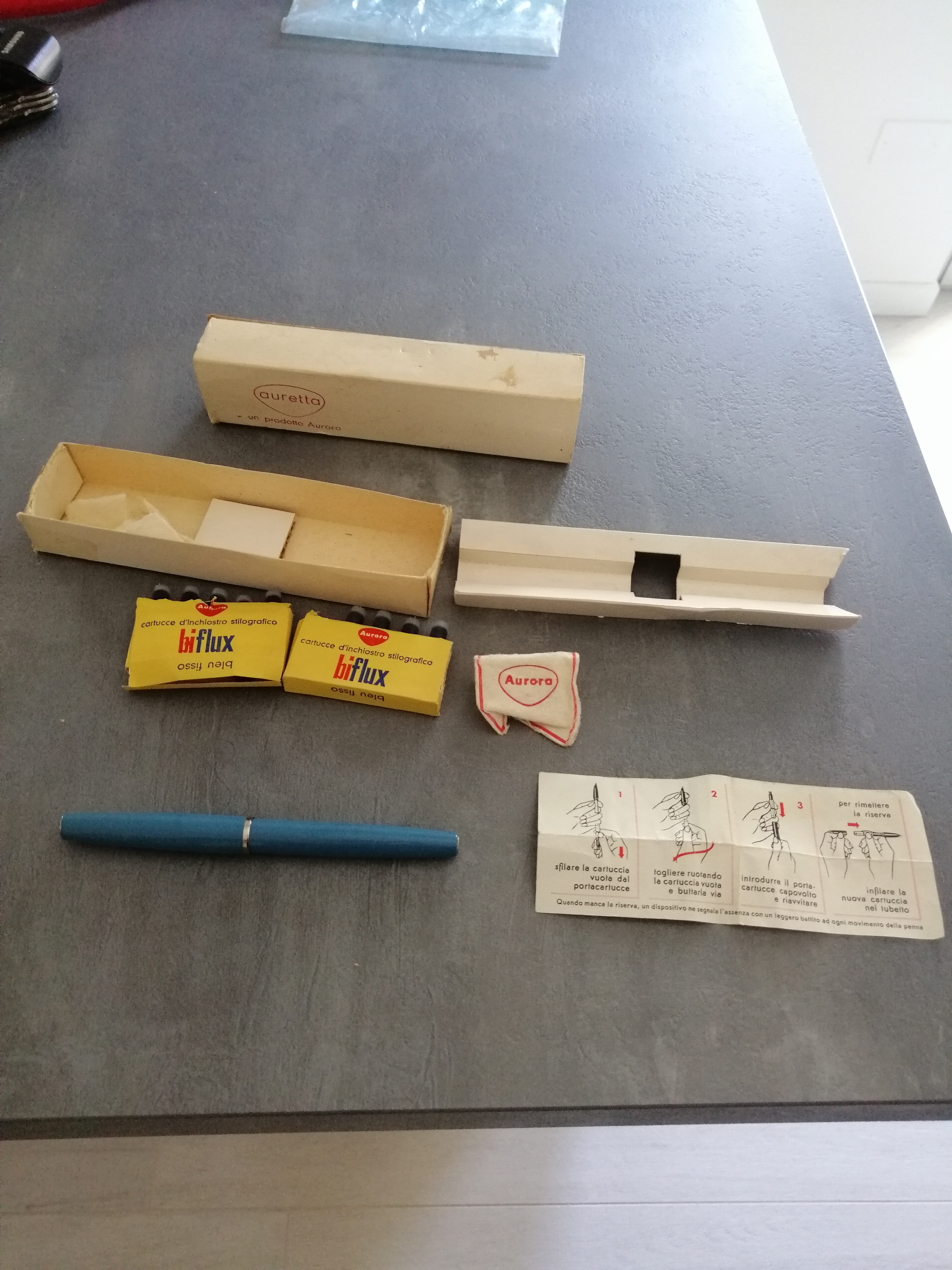 Mi propone questa bellissima aurora auretta (e dire che fino a qualche mese fa avevo una sola penna aurora che non utilizzavo visto che non mi piace il tratto) che si aggiunge alla 88 Nizzoli e alla Duocart che mi aveva regalato un collega un mese fa circa.
